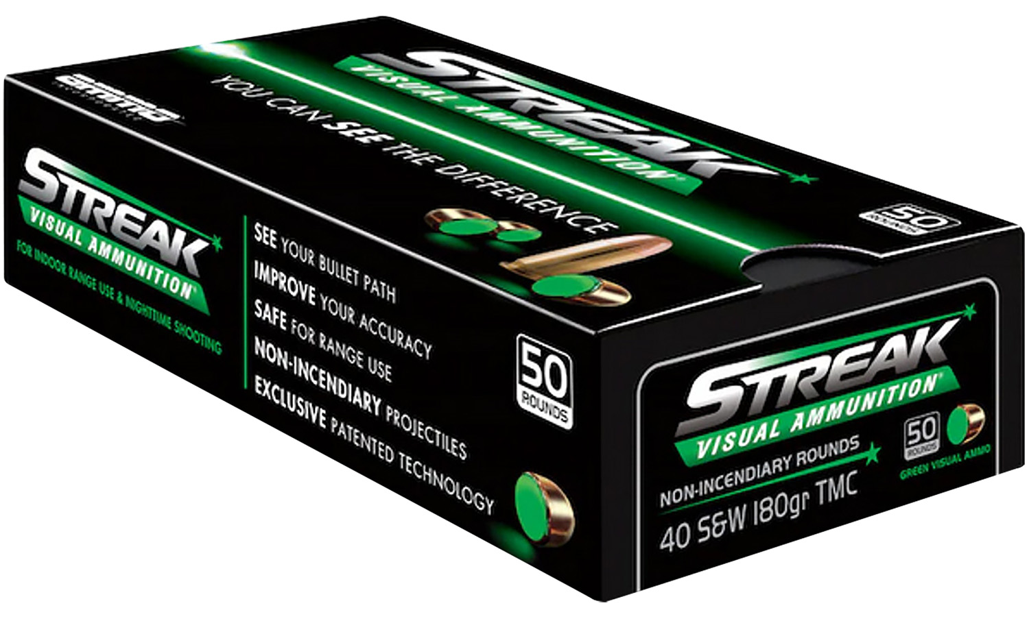 Ammo Inc 40180TMCSTRKGRN50 Streak Visual (GREEN) 40S&W 180gr Total Metal Case 50 Per Box/20 Case