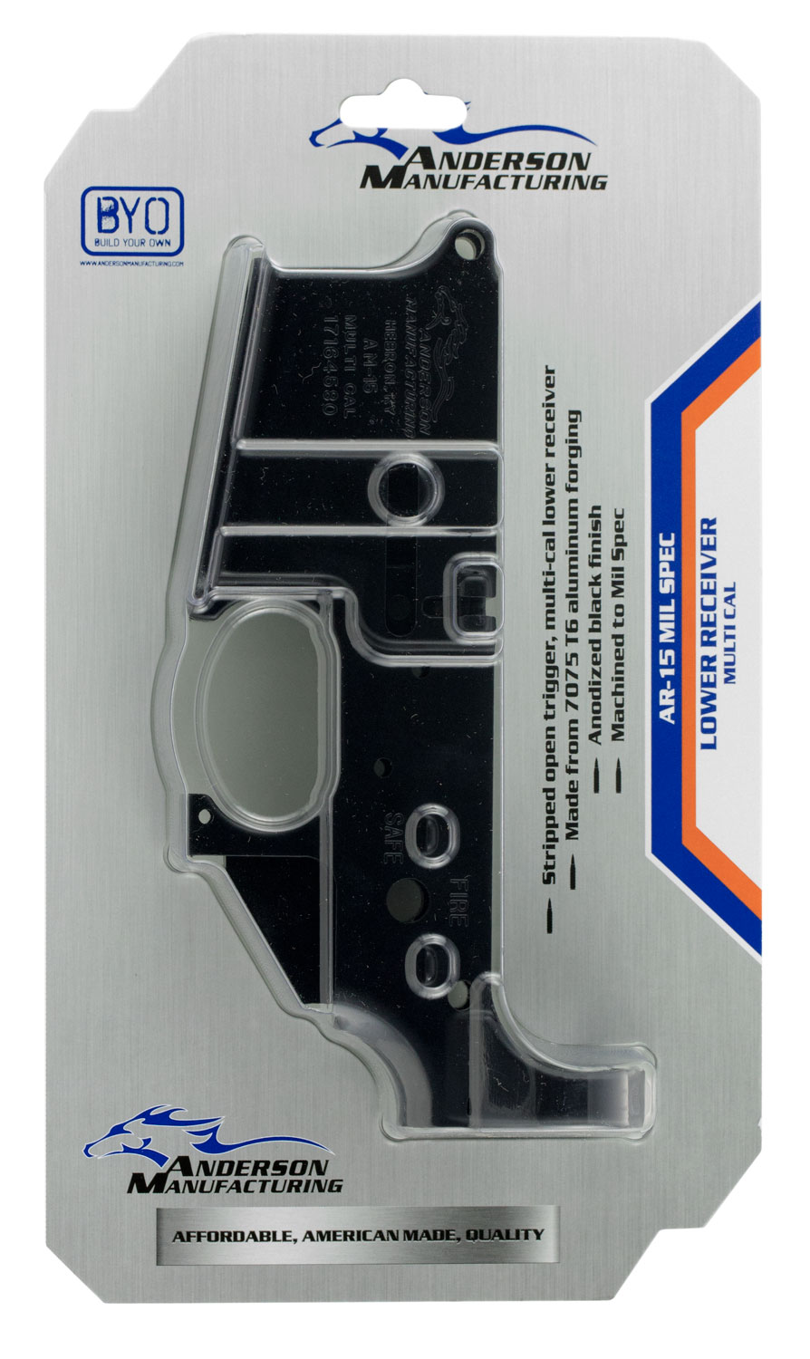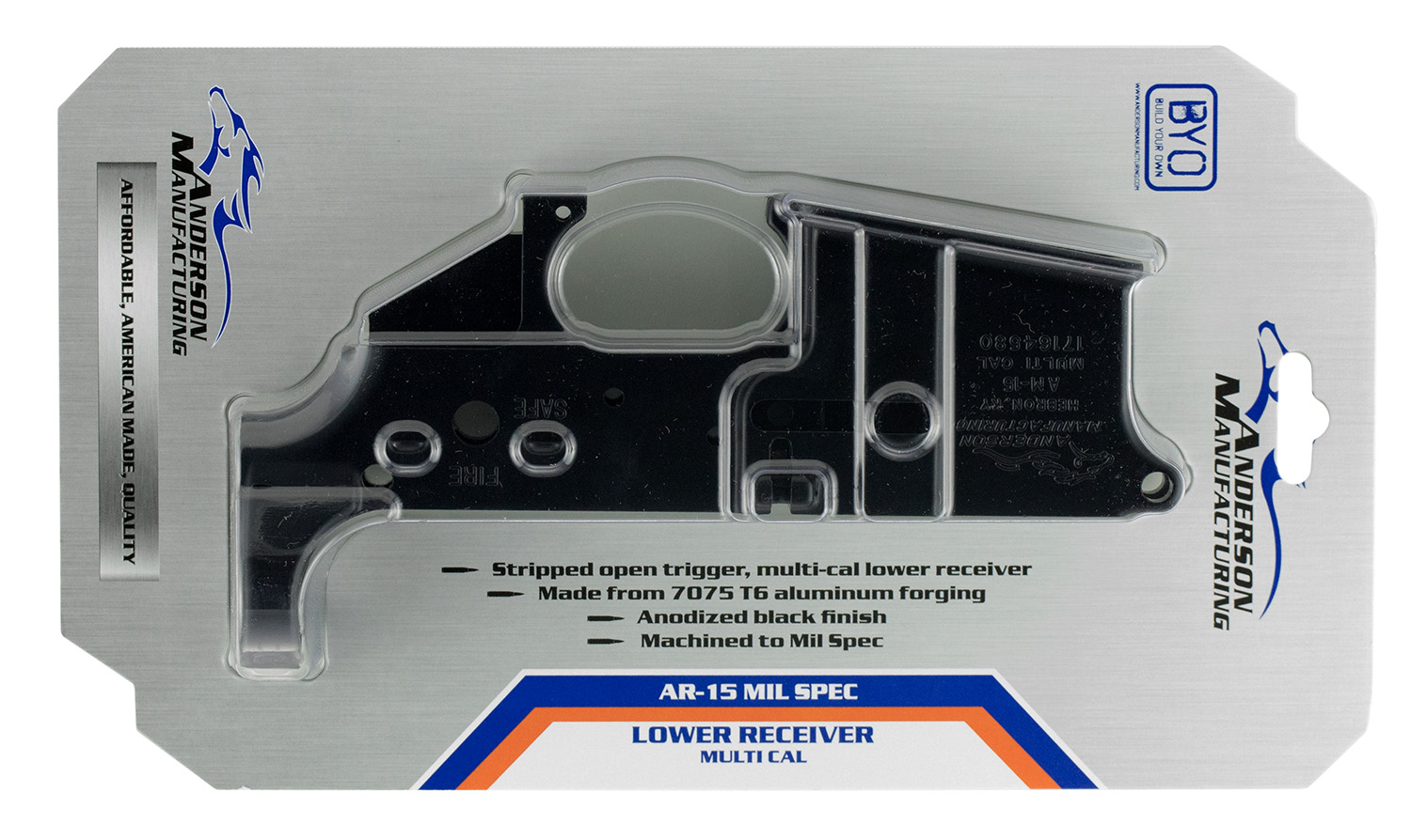 Anderson D2K067A000OP Receiver Multi-Caliber Black Anodized Finish 7075-T6 Aluminum Material with Mil-Spec Dimensions for AR-15