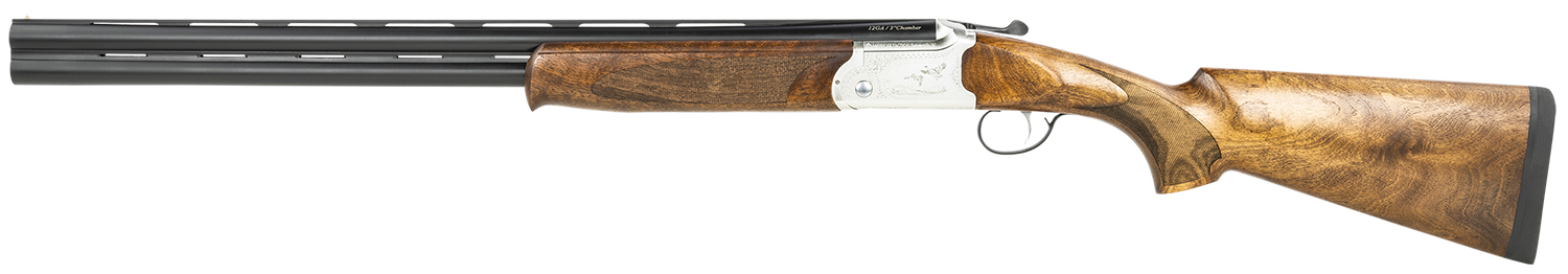 ATI ATIGKOF12SVE26 Cavalry SVE 12 Gauge 3″ 2rd 26″ Blued O/U Barrel, Silver Engraved Metal Finish, Oiled Turkish Walnut Stock, Ejector, 5 Chokes