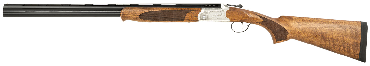 ATI ATIGKOF28SVE Cavalry 28 Gauge Break Open 3″ 2rd, 28″ Matte Blued Over/Under Vent Rib Barrel, Silver Engraved Aluminum Receiver, Fixed Oiled Turkish Walnut Walnut Stock