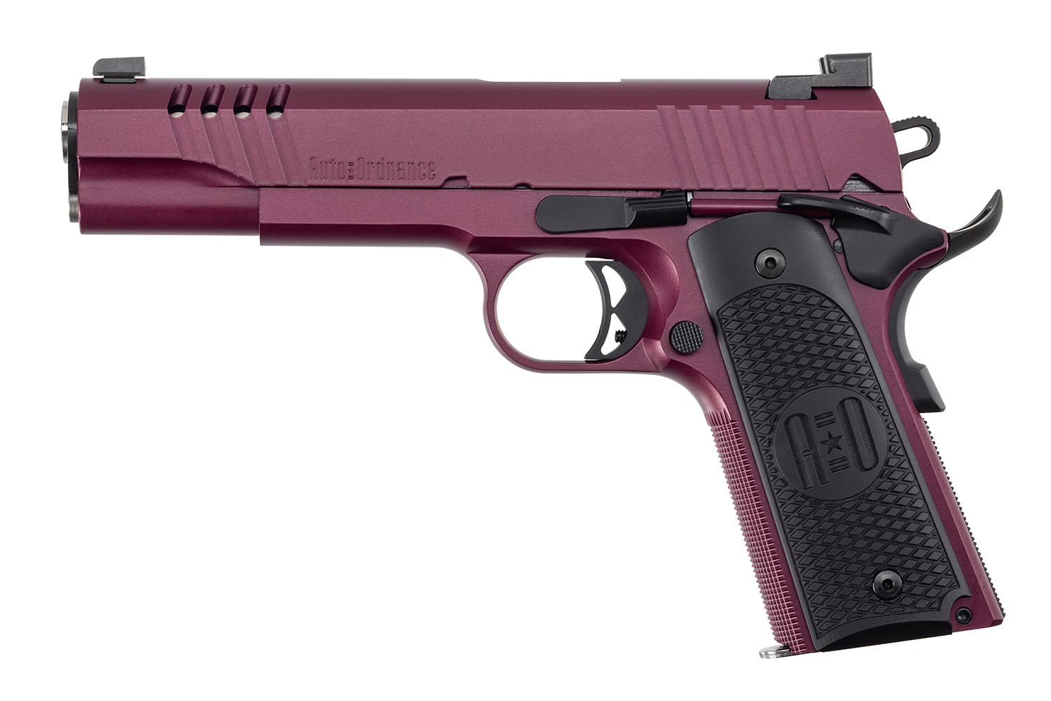 Auto-Ordnance 1911TCAC9 1911 45 ACP 7+1 5″ Stainless Steel Barrel, Serrated Stainless Steel Slide, Black Cherry Cerakote Steel Frame w/Beavertail, Armor Black Cerakote Engraved Aluminum Grip