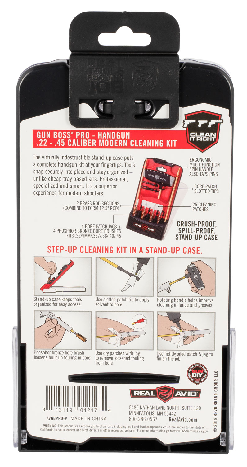 Real Avid AVGBPROP Gun Boss Cleaning Kit Multi-Caliber Pistol Firearm Slotted Tip 12.50″ Long Bronze Bristles Includes Case