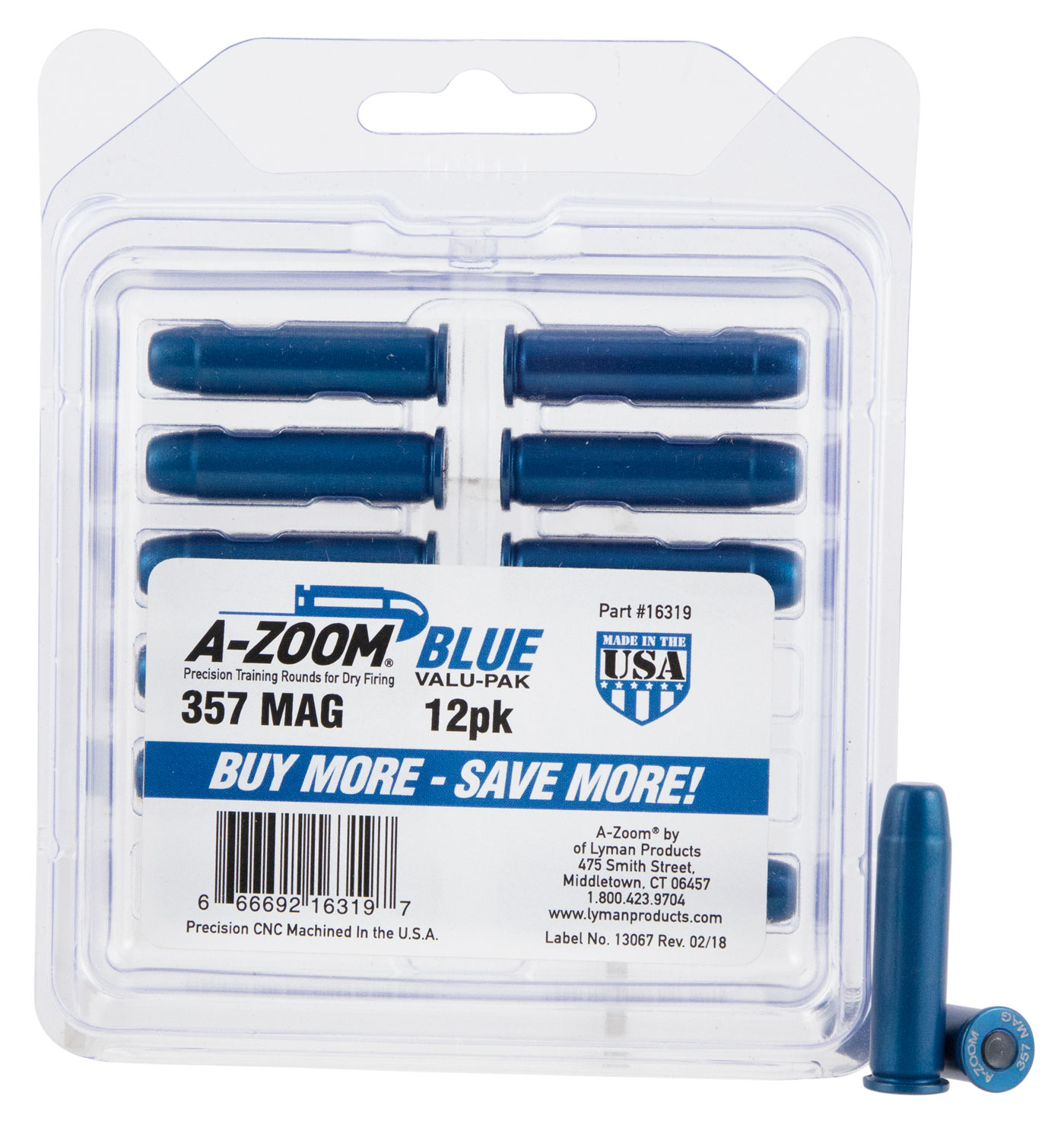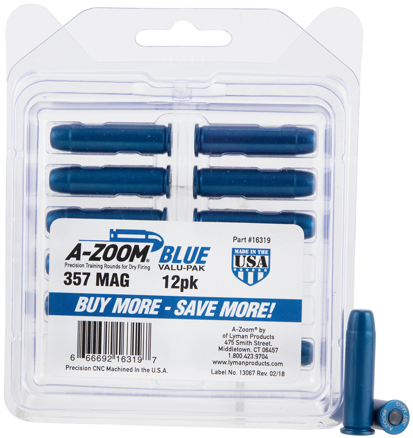 A-Zoom 16319 Blue Snap Caps Revolver 357Mag 12Pack