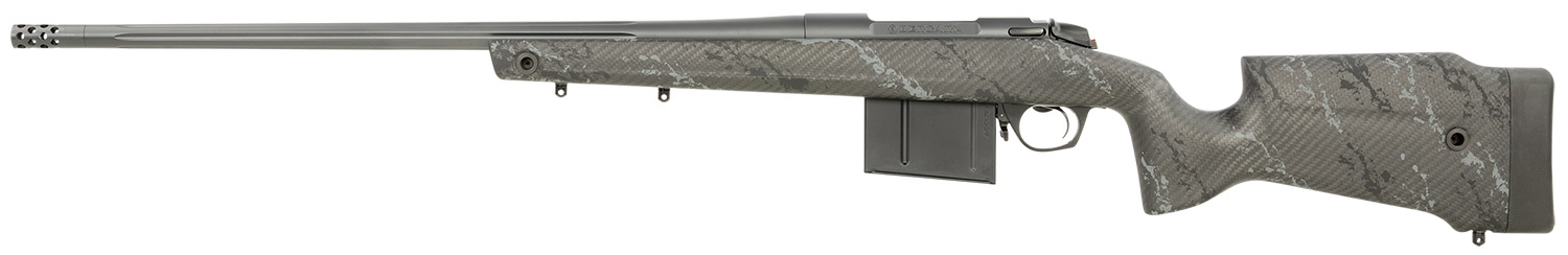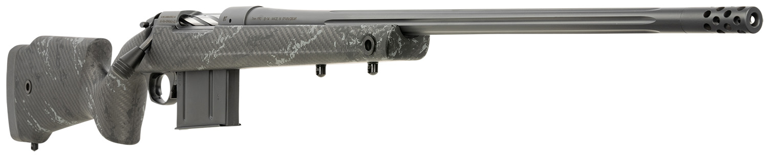 Bergara Rifles B14LM7513 B-14 Crest 7mm PRC 3+1 22″ Fluted/Threaded, Sniper Gray Cerakote Barrel/Rec, Monte Carlo Carbon Fiber Stock with Black & Gray Splatter, Omni Muzzle Brake
