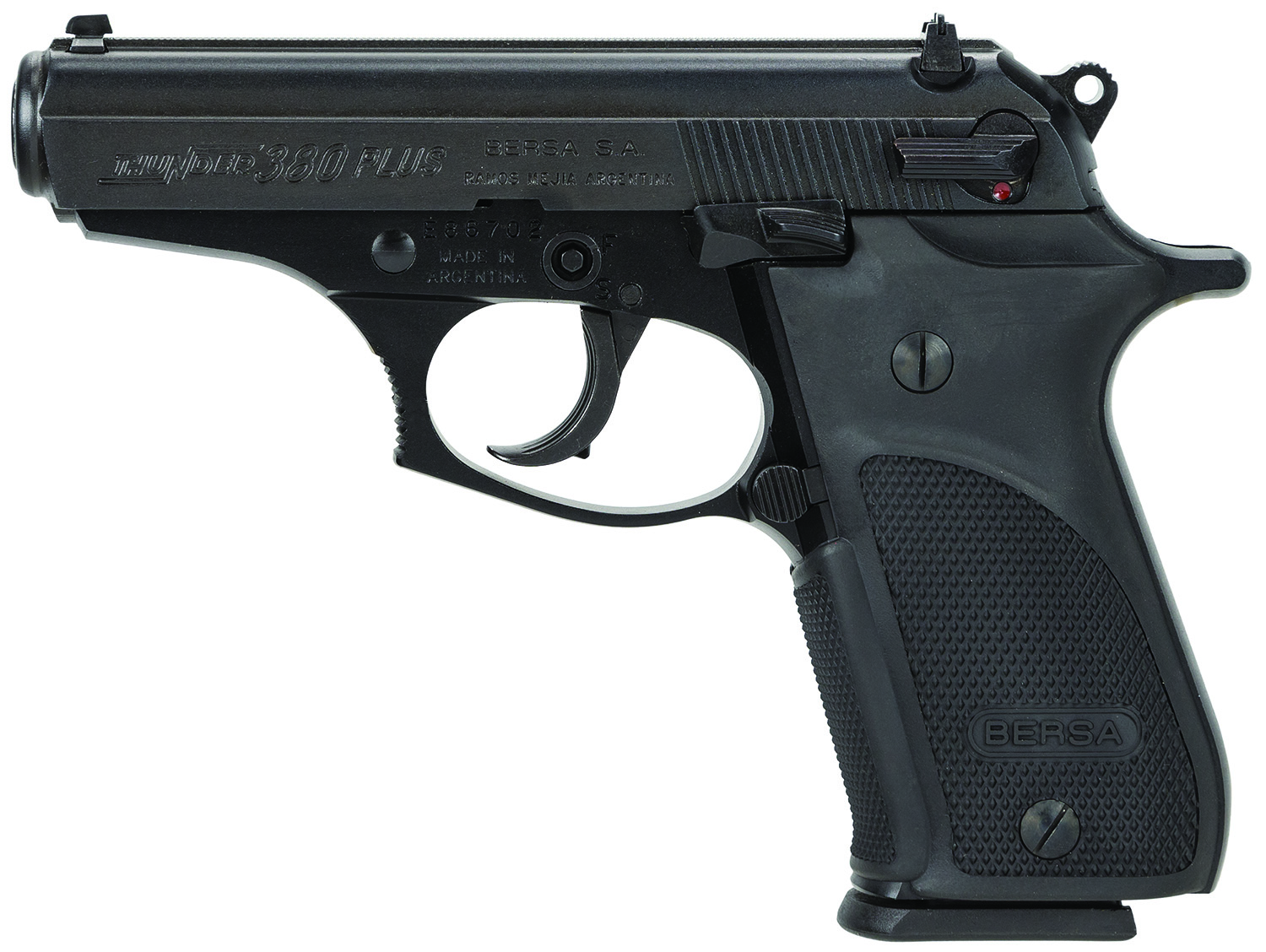 Bersa THUN380PM15 Thunder Plus Sub-Compact Frame 380 ACP 15+1, 3.50″ Black Steel Barrel, Matte Black Serrated Steel Slide & Aluminum Frame w/Beavertail, Black Right Hand