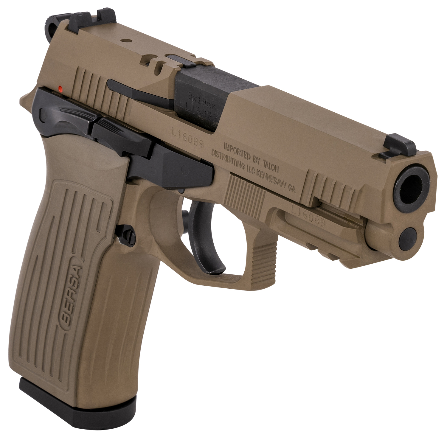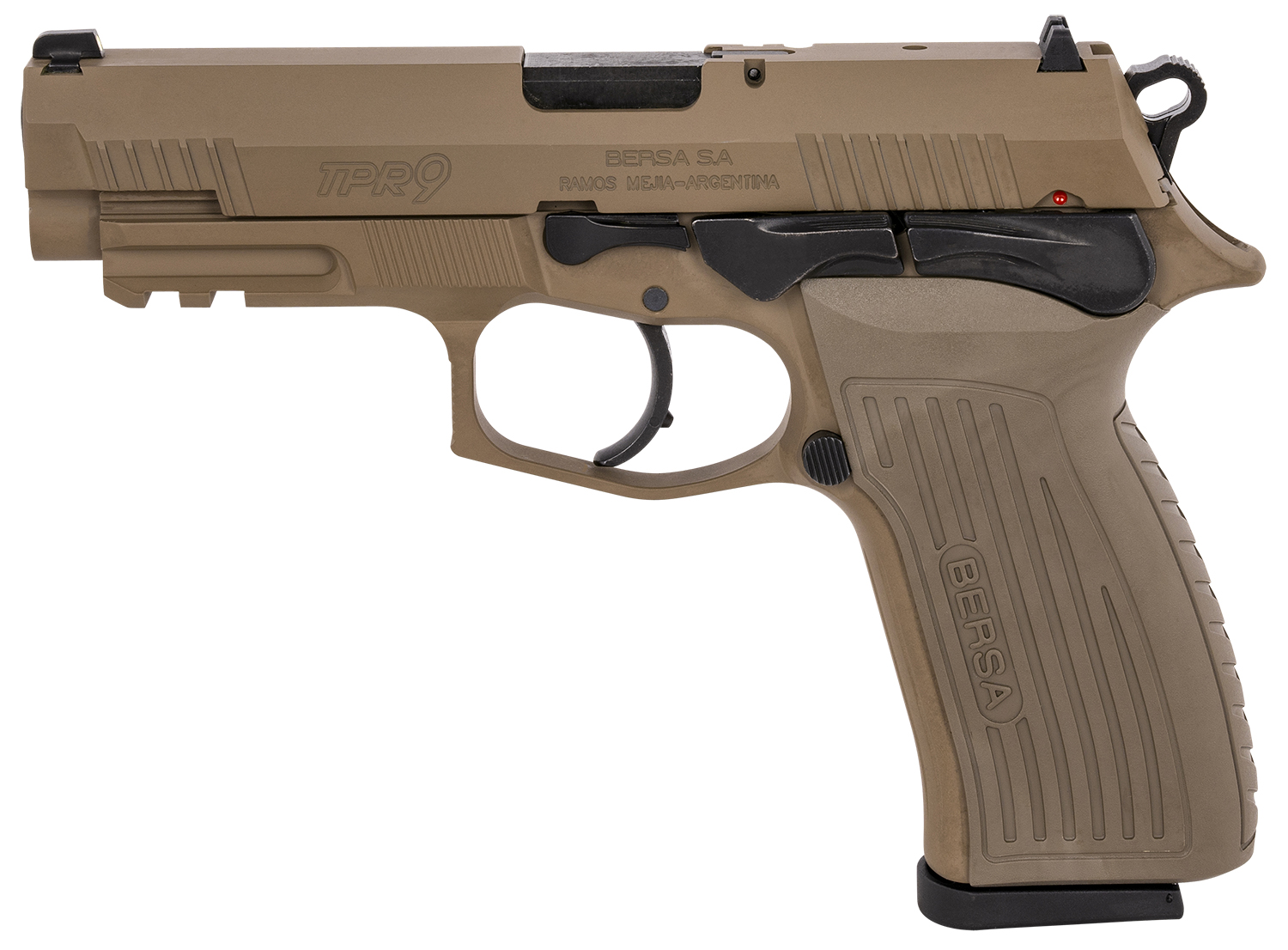Bersa TPR9FDE TPR Sports South Exclusive Full Size Frame 9mm Luger 17+1, 4.30″ Black Steel Barrel, Flat Dark Earth Serrated Steel Slide & Aluminum Frame w/Picatinny Rail, Ambidextrous