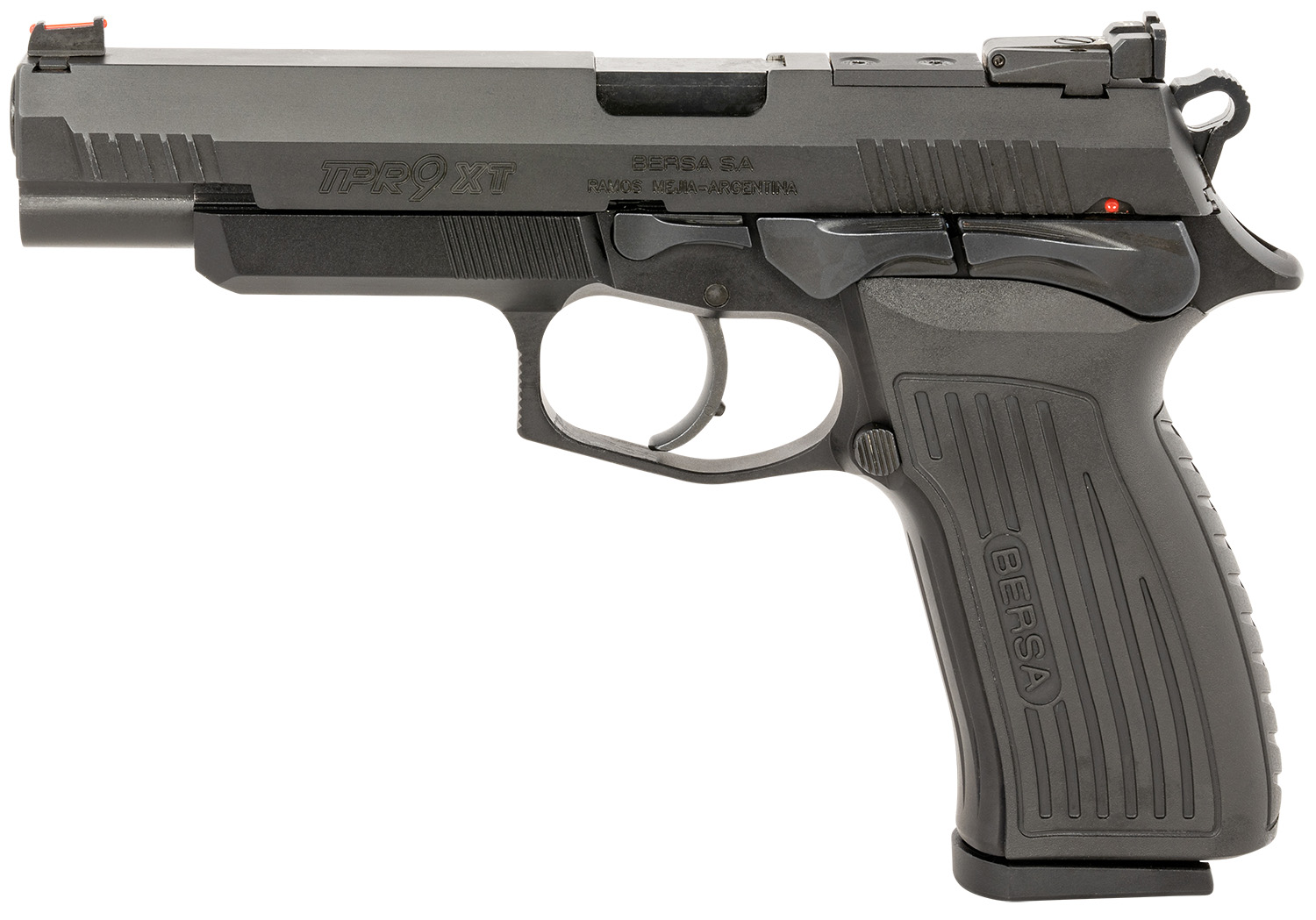 Bersa TPR9XT TPR XT Full Size Frame 9mm Luger 17+1, 4.96″ Black Steel Barrel, Matte Black Serrated Steel Slide & Aluminum Frame, Ambidextrous