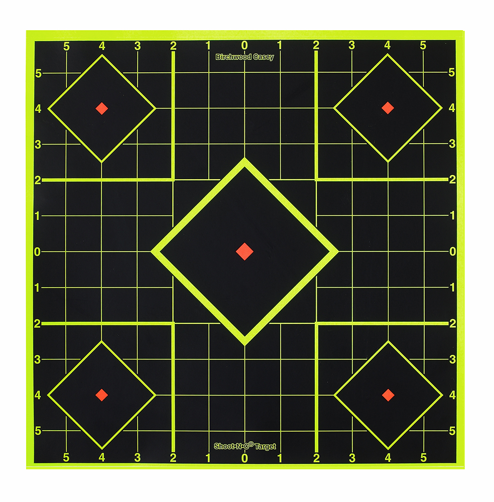 Birchwood Casey 34105 Shoot-N-C Reactive Target Self-Adhesive Paper Black/Yellow 8″ 5-Diamond 6 Pack