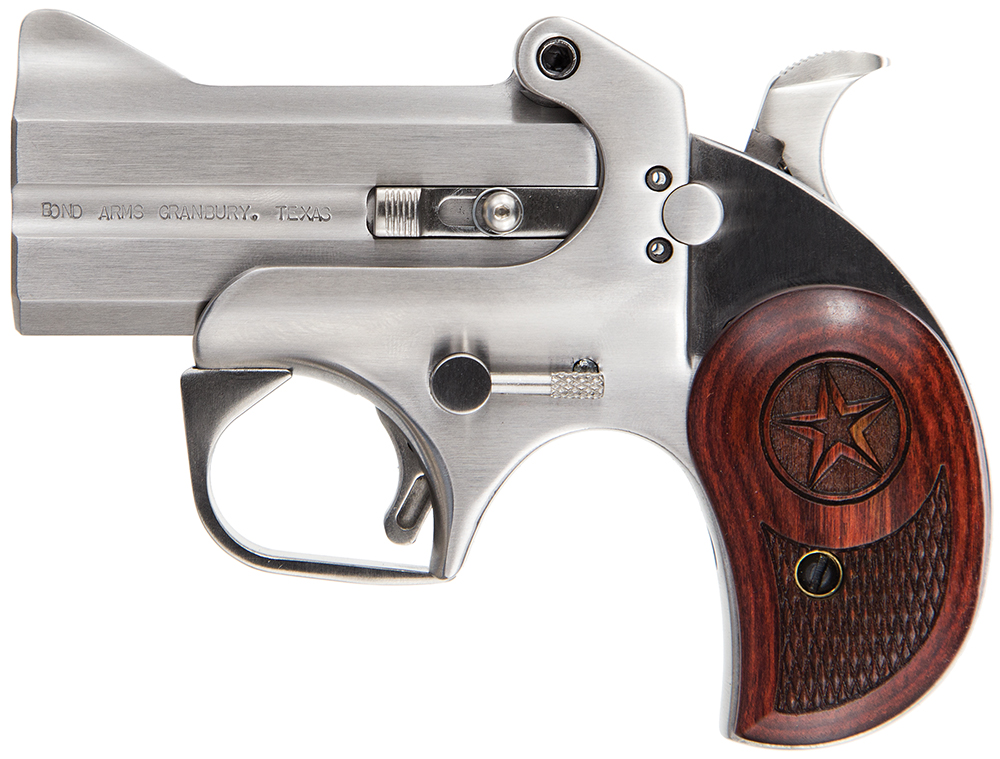 Bond Arms BATD Texas Defender 357 Mag/38 Sp 2rd 3″ Barrel, Stainless Metal Finish, Rosewood Grip, Blade Front/Fixed Rear Sights, Manual Safety