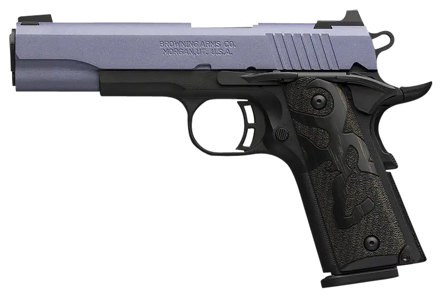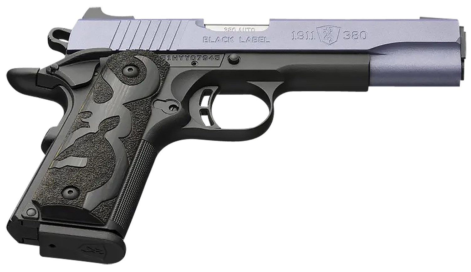 Browning 051985492 1911-380 Black Label Full Size Frame 380 ACP 8+1, 4.25″ Matte Stainless Steel Barrel, Crushed Orchid Cerakote Stainless Steel Steel Slide, Matte Black Polymer Frame w/Beavertail