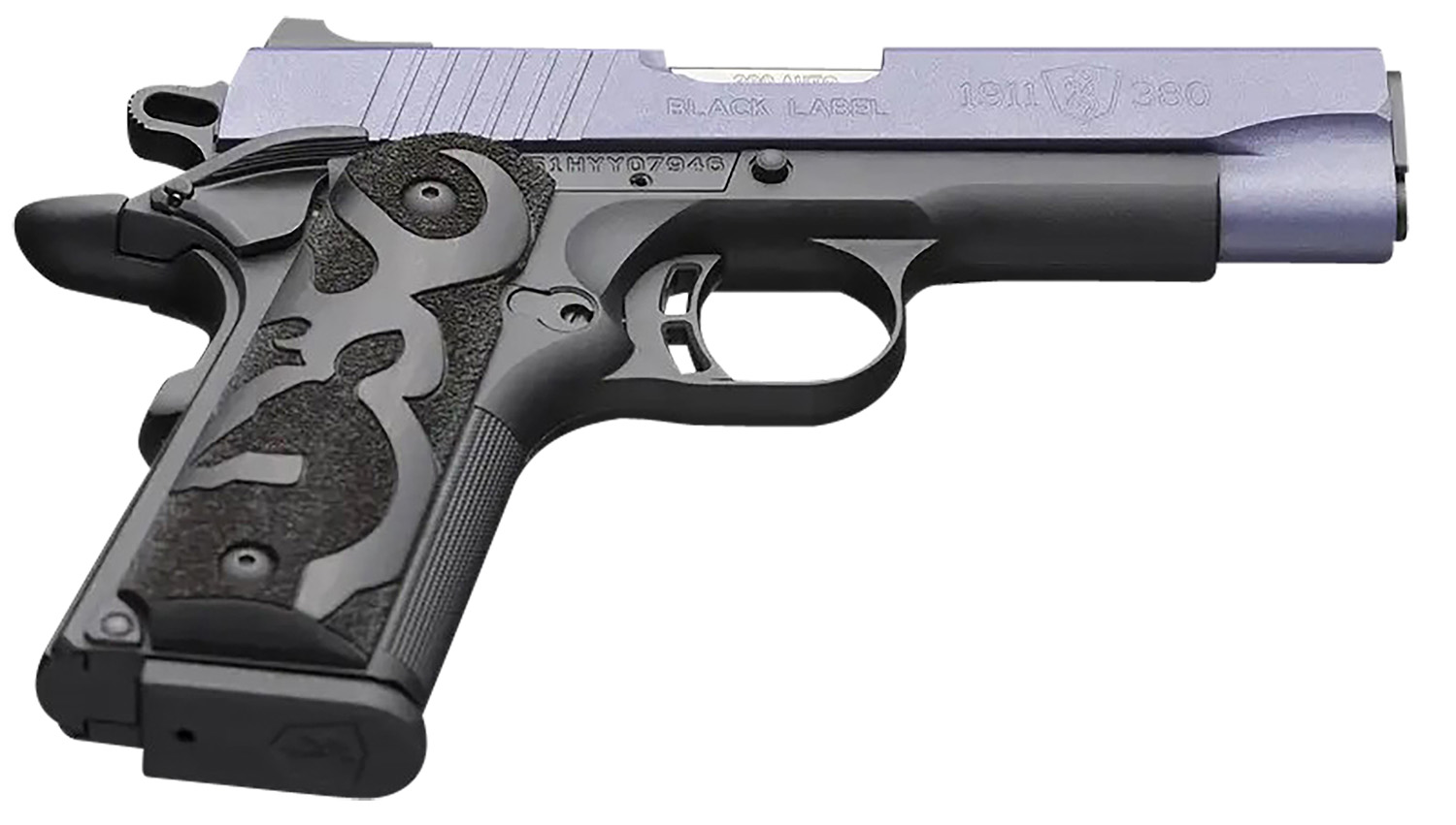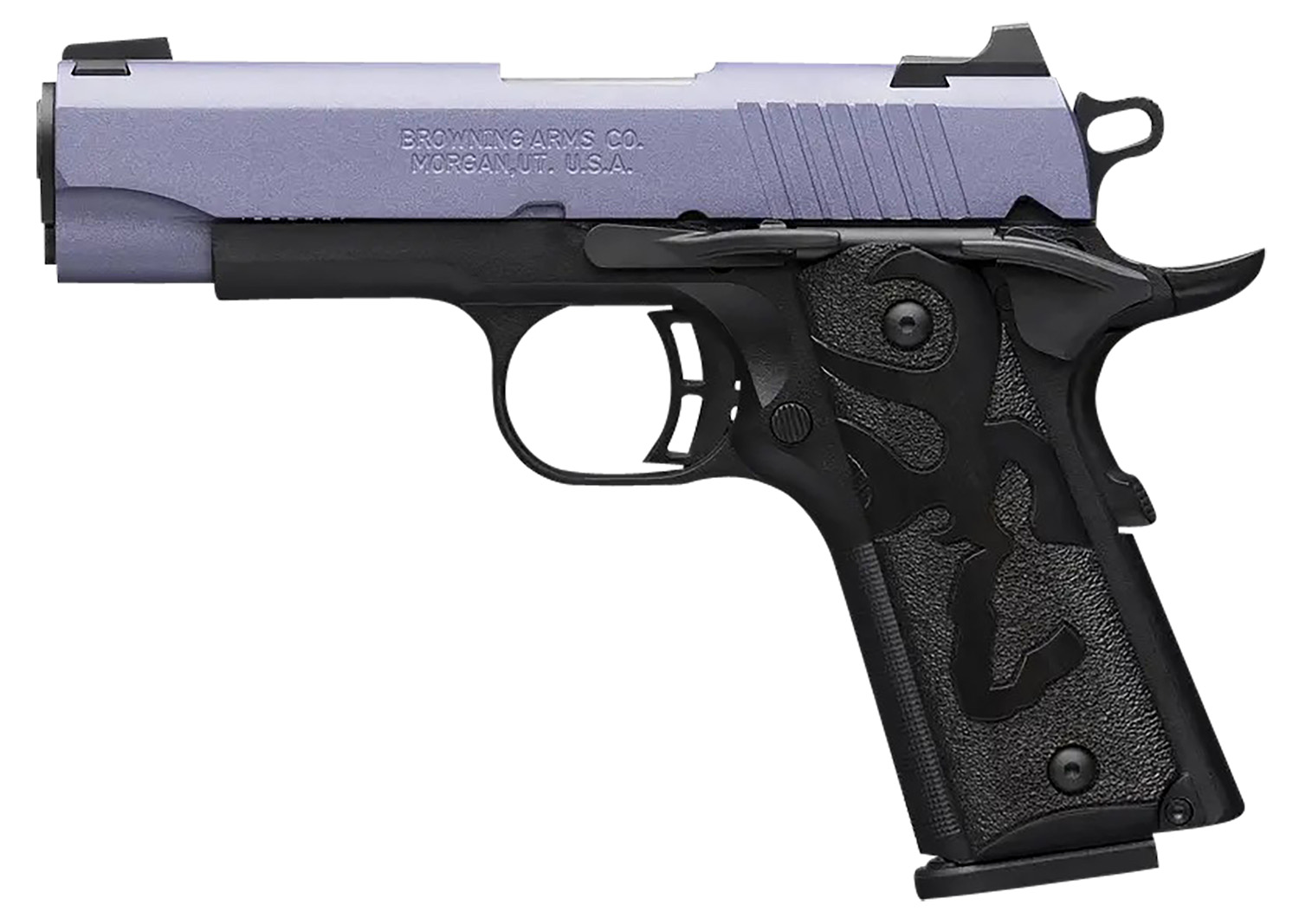 Browning 051986492 1911-380 Black Label Compact Frame 380 ACP 8+1, 3.63″ Matte Stainless Steel Barrel, Crushed Orchid Cerakote Serrated Stainless Steel Slide, Matte Black Polymer Frame w/Beavertail