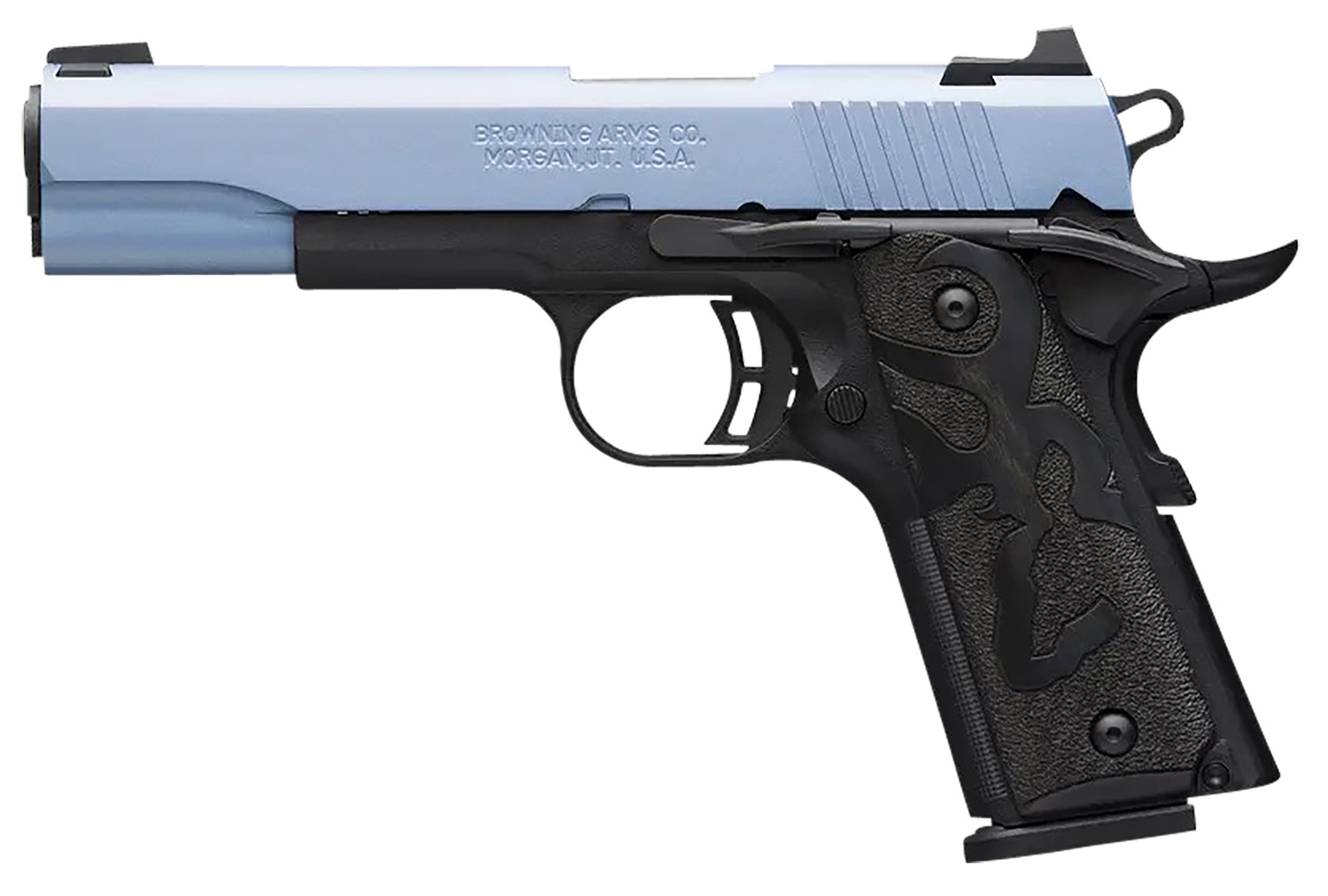 Browning 051989492 1911-380 Black Label Full Size Frame 380 ACP 8+1, 4.25″ Matte Stainless Steel Barrel, Polar Blue Cerakote Serrated Aluminum Slide, Matte Black Polymer Frame w/Beavertail