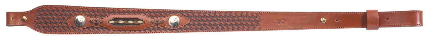 Browning 122602 Buffalo Nickel Sling made of Brown Leather with Nickle Overlays, Braided Horsehair Inlay, Basket Weave Finish, 25.50″-28″ OAL & Adjustable Design for Rifles