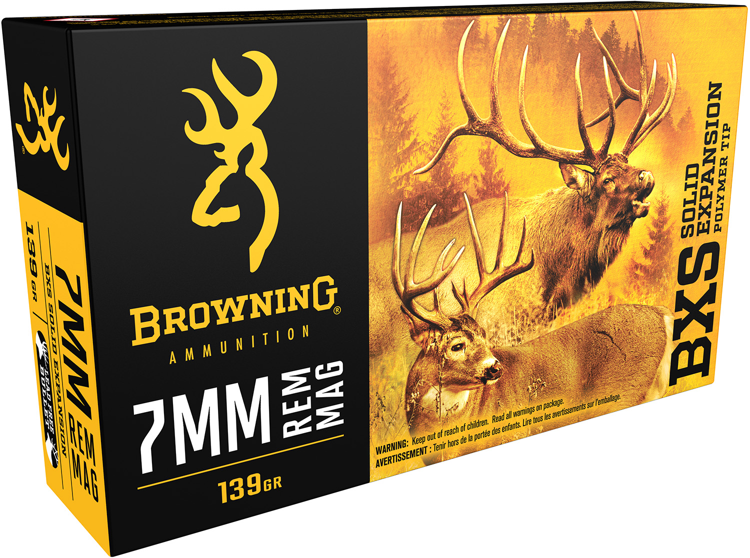 Browning Ammo B192400071 BXS Copper Expansion 7mmRem Mag 139gr Lead Free Solid Expansion Polymer Tip 20 Per Box/10 Case
