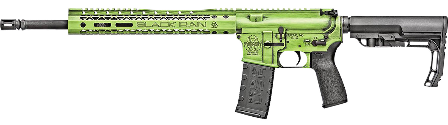 Black Rain Ordnance BROFUSIONZGB Spec15 Fusion 5.56x45mm NATO 30+1 16″, Zombie Green Battleworn, 12″ M-LOK, MFT EPG16 Grip/Minimalist Stock