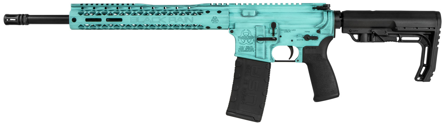 Black Rain BROFUSIONTBB Spec + Fusion 5.56x45mm NATO 16″ 30+1 Tiffany Blue Battleworn Cerakote 6 Position MFT Minimalist Stock