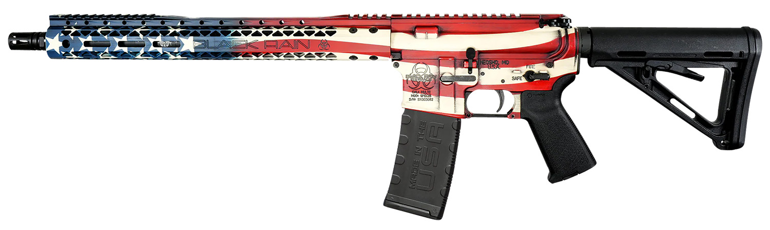 Black Rain Ordnance BROPATAMERICA Spec 15+ Patriot 5.56x45mm NATO 30+1 16″, American Flag, 15″ Slim M-LOK, Magpul Grip/Carbine Stock