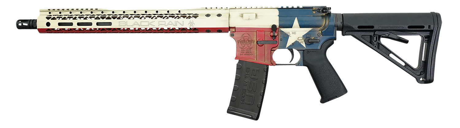 Black Rain Ordnance BROPATTEXAS Spec 15+ Patriot 5.56x45mm NATO 30+1 16″, Texas Flag, 15″ Slim M-LOK, Magpul Grip/Carbine Stock