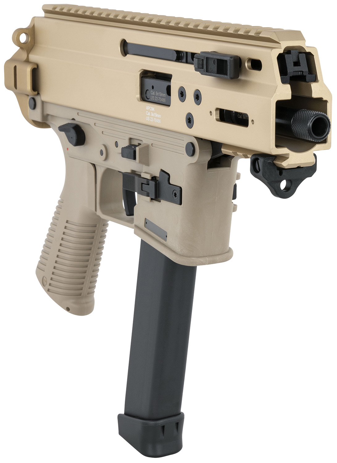 B&T Firearms 36176502GCT APC9K 9mm Luger 33+1 4.30″ Black Steel Barrel, Coyote Tan Picatinny Rail Receiver, Brace Adapter, Coyote Polymer Grips, Ambidextrous