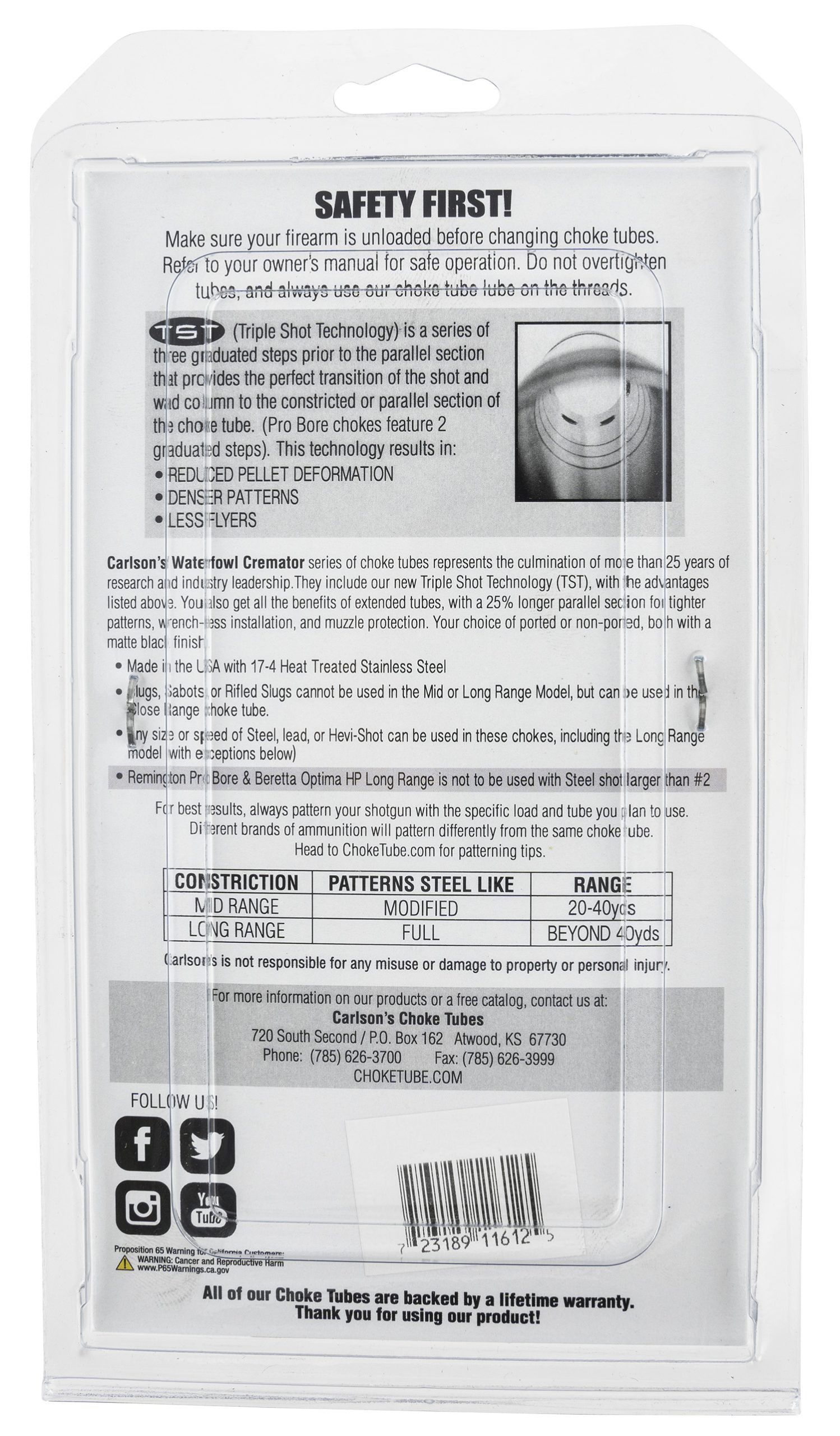 Carlson’s Choke Tubes 11612 Cremator 11612 Berretta/Benelli Mobil 12 Gauge Mid/Long Range Non-Ported 17-4 Stainless Steel