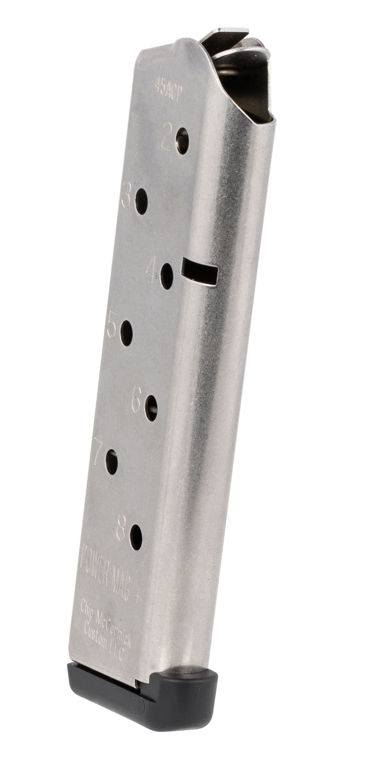 CMC Products 12131 Power Mag Plus 8rd 45 ACP Fits 1911 Government Stainless Steel w/ Black Base Pad