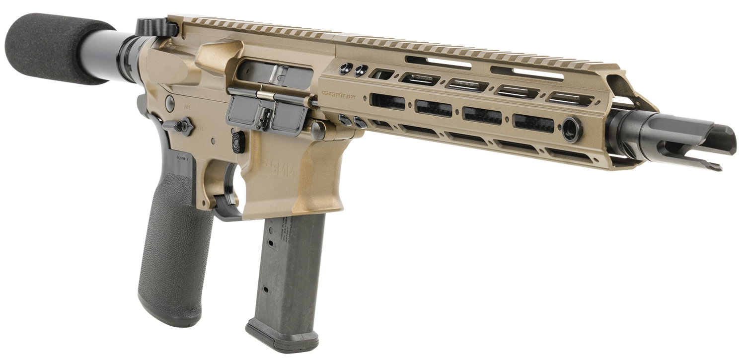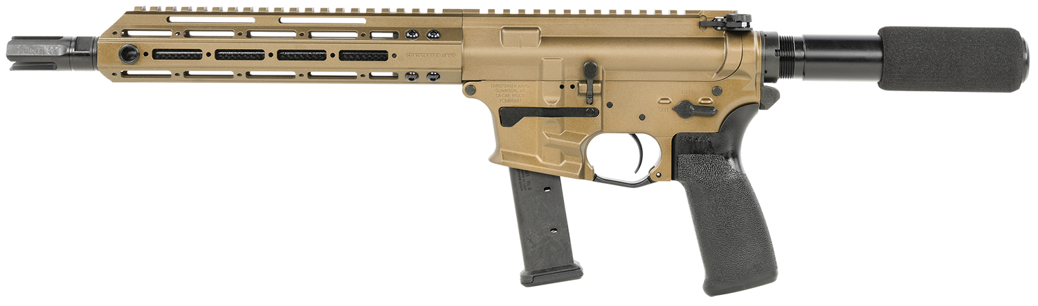 Christensen Arms 8011103401 CA9MM 9mm Luger 10.50″ 21+1, Burnt Bronze Cerakote, Black Buffer Tube Stock, Polymer Grip