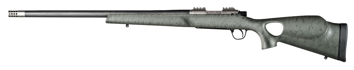 Christensen Arms CA10269H14222 Summit TI Full Size 6.5 Creedmoor 4+1, 24″ Natural Titanium Steel Threaded Barrel, Natural Titanium Aluminum Receiver, Green w/Black Webbing Fixed Thumbhole Stock