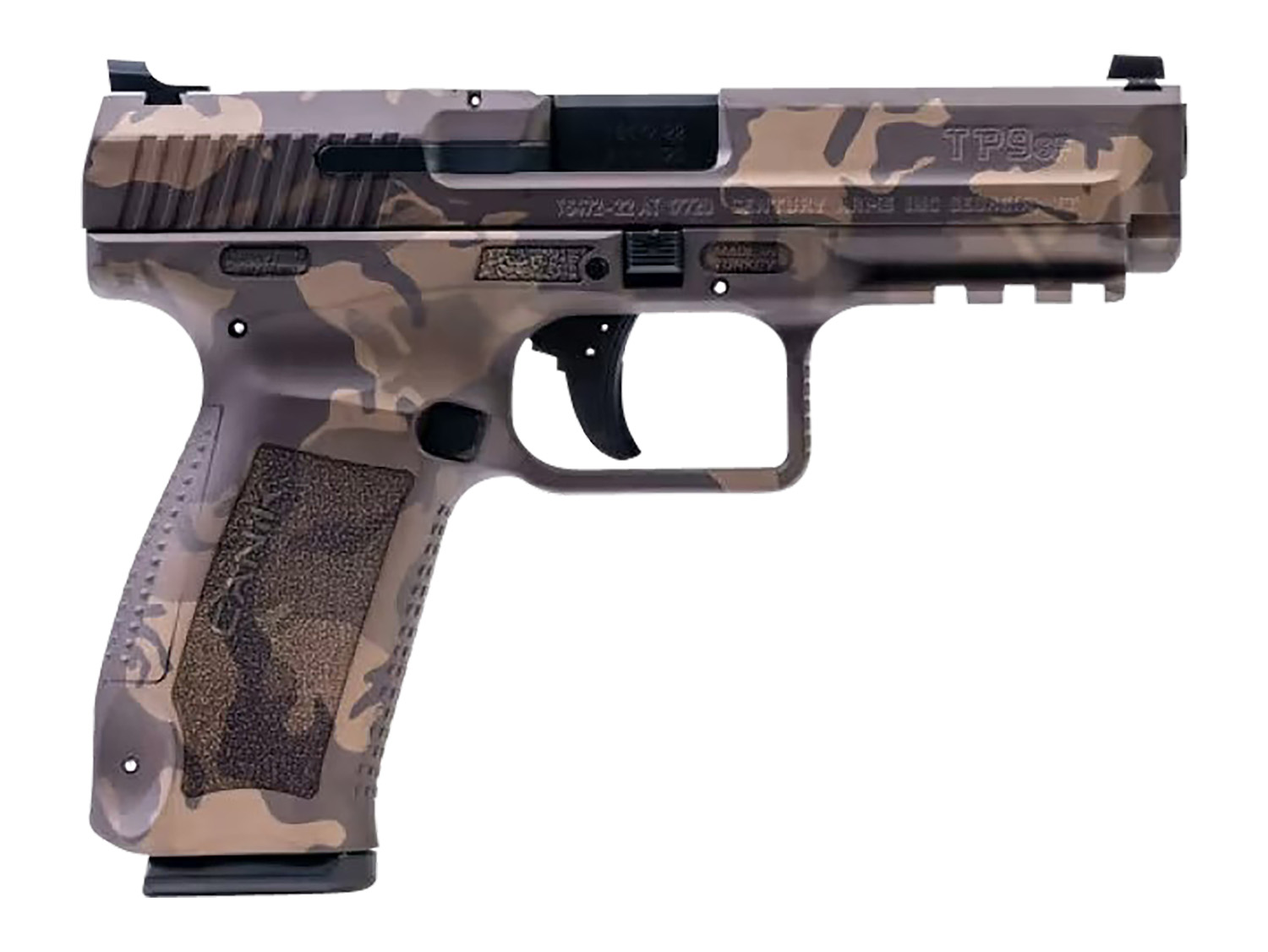Canik HG4865WBN TP9SF 9mm Luger 18+1 4.46″ Black Match Grade Barrel, Woodland Bronze Camo Serrated Steel Slide & Polymer Frame w/Picatinny Rail, Black Interchangeable Backstrap Grip