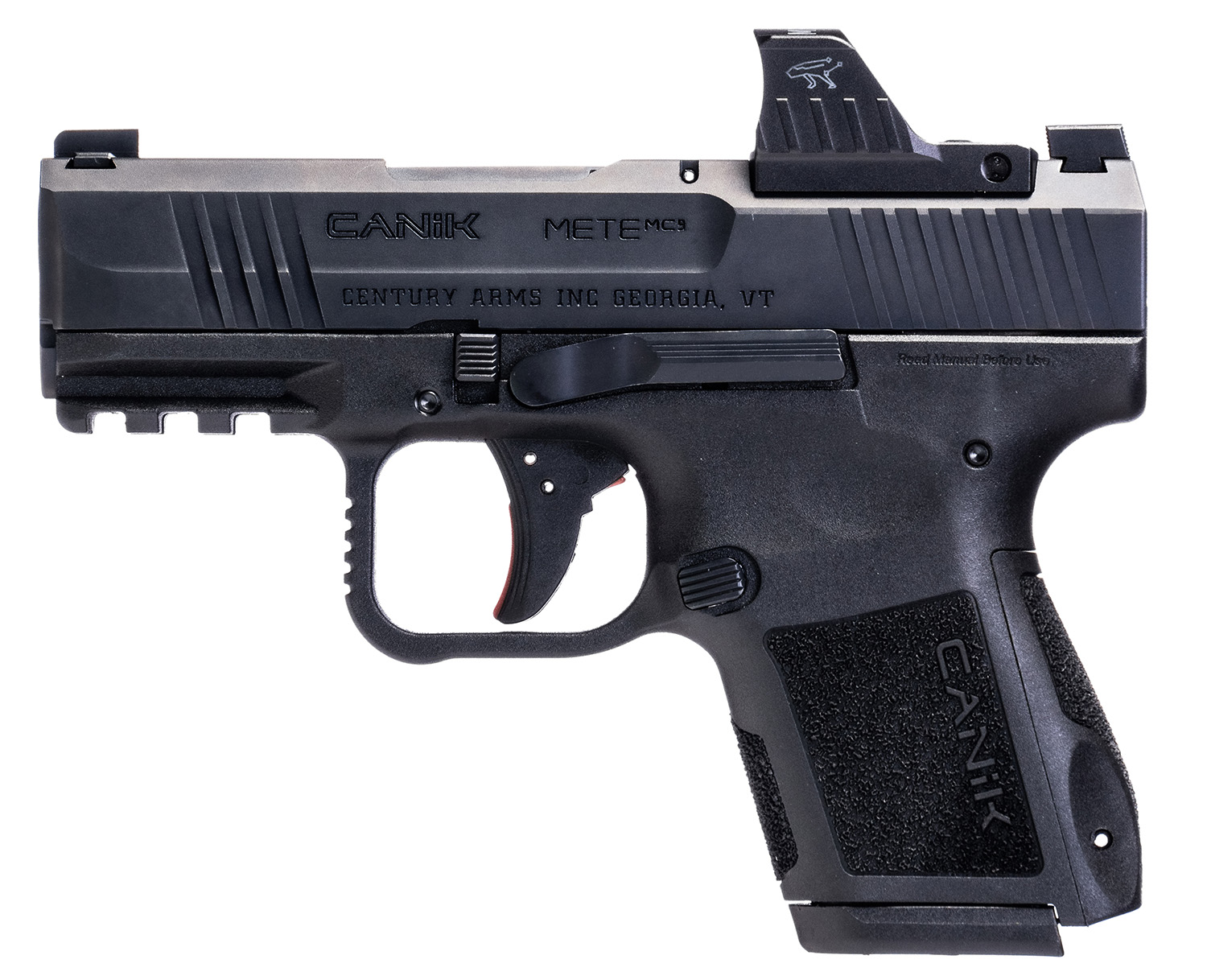 Canik HG7620VN MC9 9mm Luger 15+1, 3.18″ Black Steel Barrel, Black Tenifer Cerakote Optic Ready/Serrated Steel Slide, Black Polymer Frame w/Picatinny Rail, MeCanik M01 Red Dot