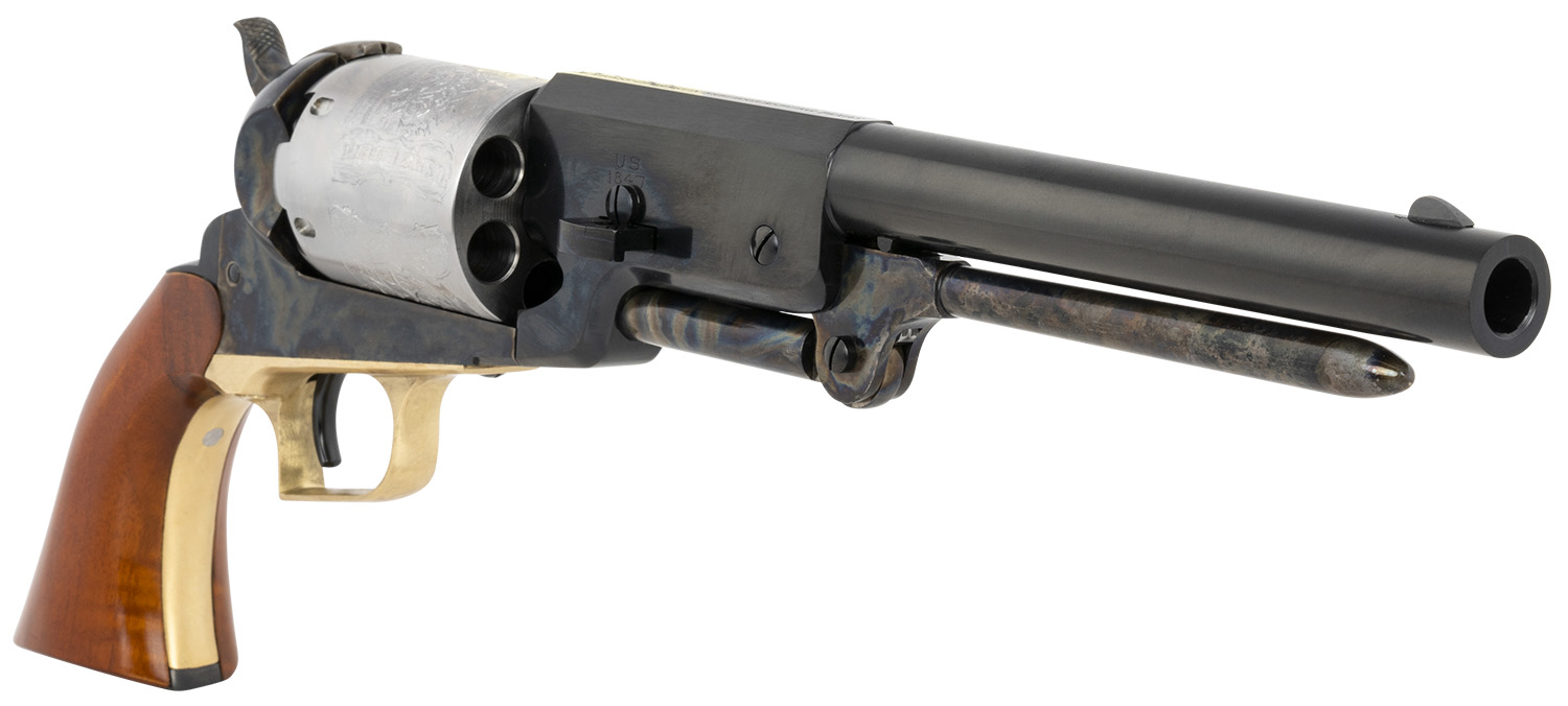 Cimarron CA020COF 1847 Walker 44 Cal 6 Shot 9″ Blued Barrel, White Engraved Steel Cylinder, Color Case Hardened Steel Frame Walnut Grip