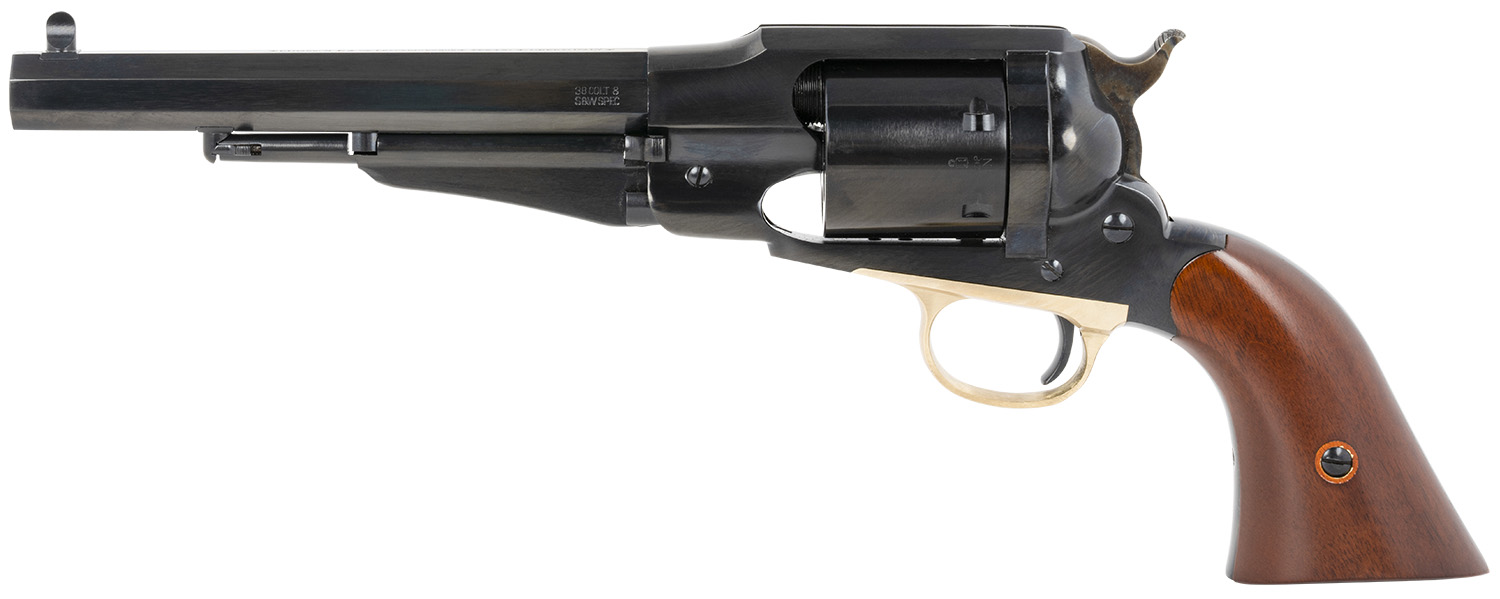Cimarron CA1010 1858 New Model Army 38 Special 6rd 7.37″ Blued Steel Barrel, Cylinder & Frame, Dovetail Front/Notch Rear Sights, Ejector Rods, Walnut Grips