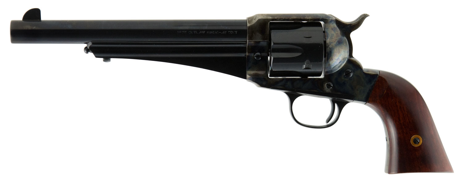 Cimarron CA151 1875 Outlaw 45 Colt (LC) 6rd 7.50″ Blued Barrel & Cylinder, Wide Front Sight, Color Case Hardened Steel Frame & Hammer, Walnut Grip