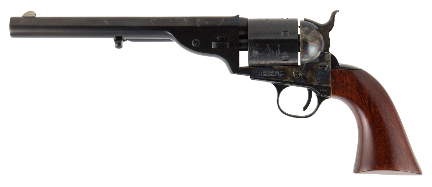 Cimarron CA916 1872 Open Top Army 45 Colt (LC) 6rd 7.50″ Blued Barrel & Cylinder, Wide Front Sight, Color Case Hardened Steel Frame, 1860 Army-Sized Walnut Grip