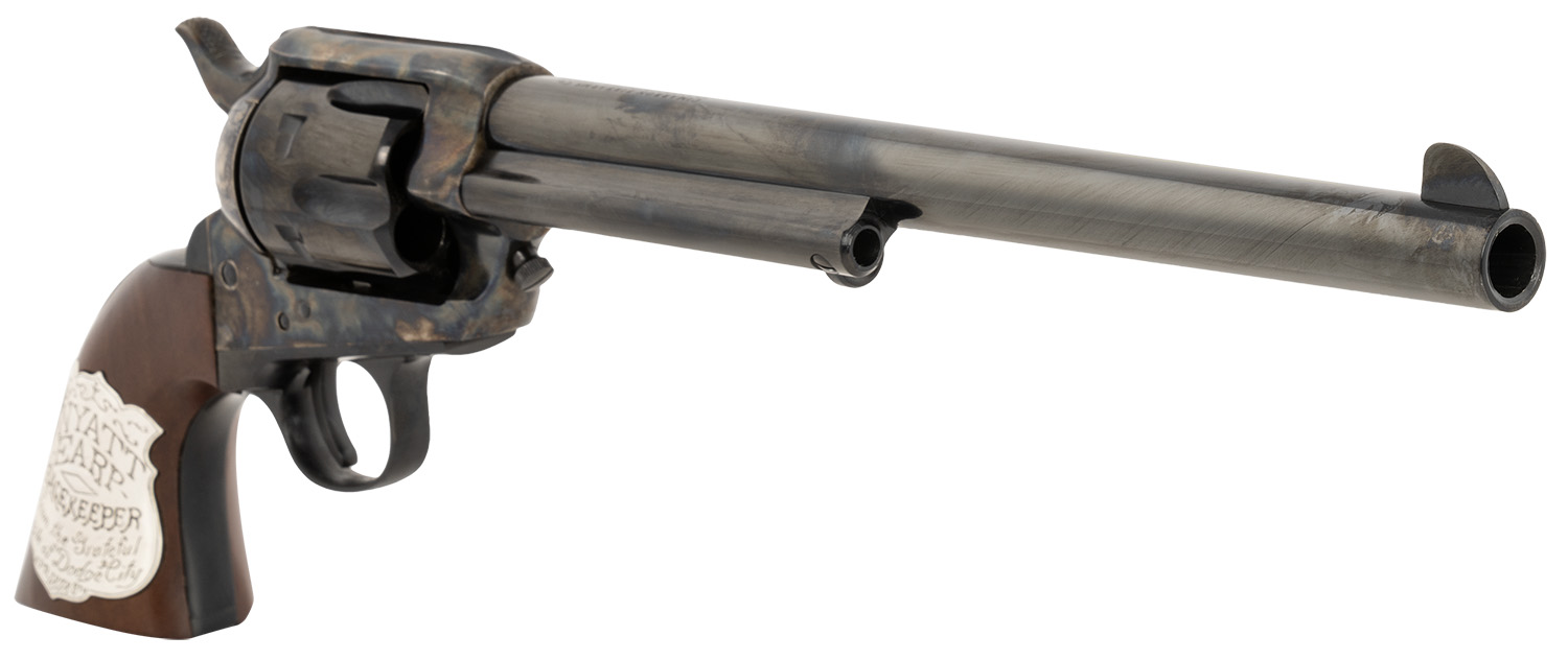Cimarron PP558 Buntline 45 LC (Long Colt) 6rd 10″ Blued Frame, Barrel & Cylinder, Walnut w/Inlaid Silver Medallion Grip