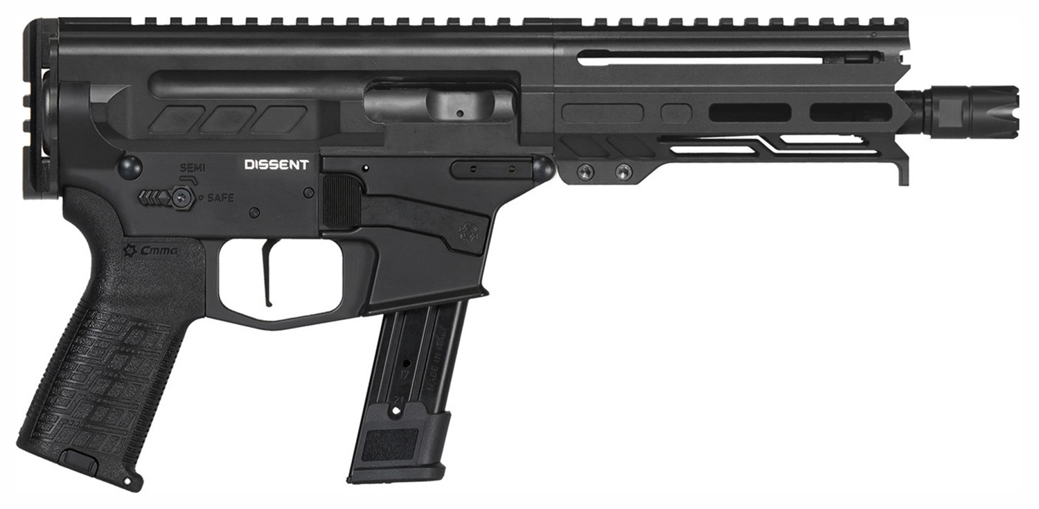 CMMG 92A682CAB Dissent MKGS 9mm Luger 33+1 6.50″, Black, Picatinny Brace Adapter, 5.50″ M-LOK Handguard, Left Side Charging Handle, Zeroed Linear Comp, TriggerTech Trigger (Sig P320 Mag Compatible)