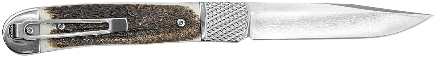 CobraTec Knives CTTHRSTG Trapper Hidden Release 3.12″ Flip Open Drop Point Plain Satin D2 Steel Blade, 4.25″ Stag Scales Handle