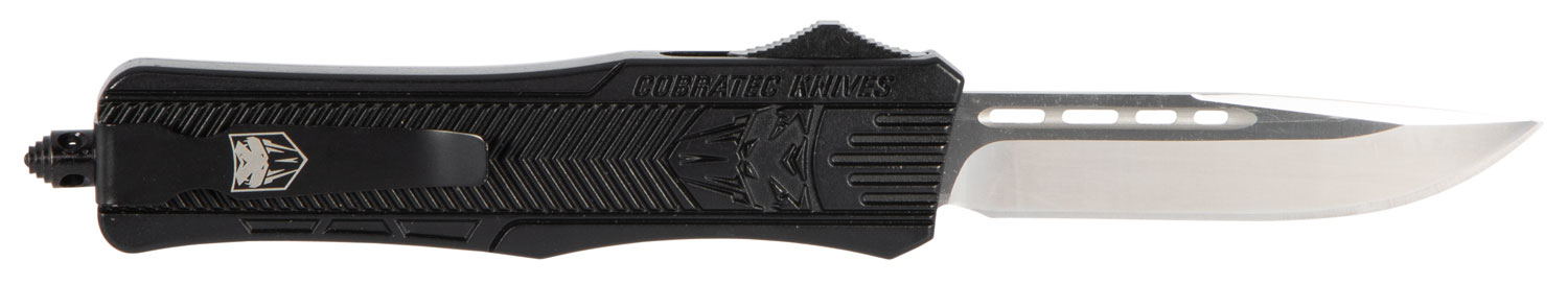 CobraTec Knives MBCTK1MDNS CTK-1 Medium 3″ OTF Drop Point Plain D2 Steel Blade/Black Aluminum Handle Features Glass Breaker Includes Side Button
