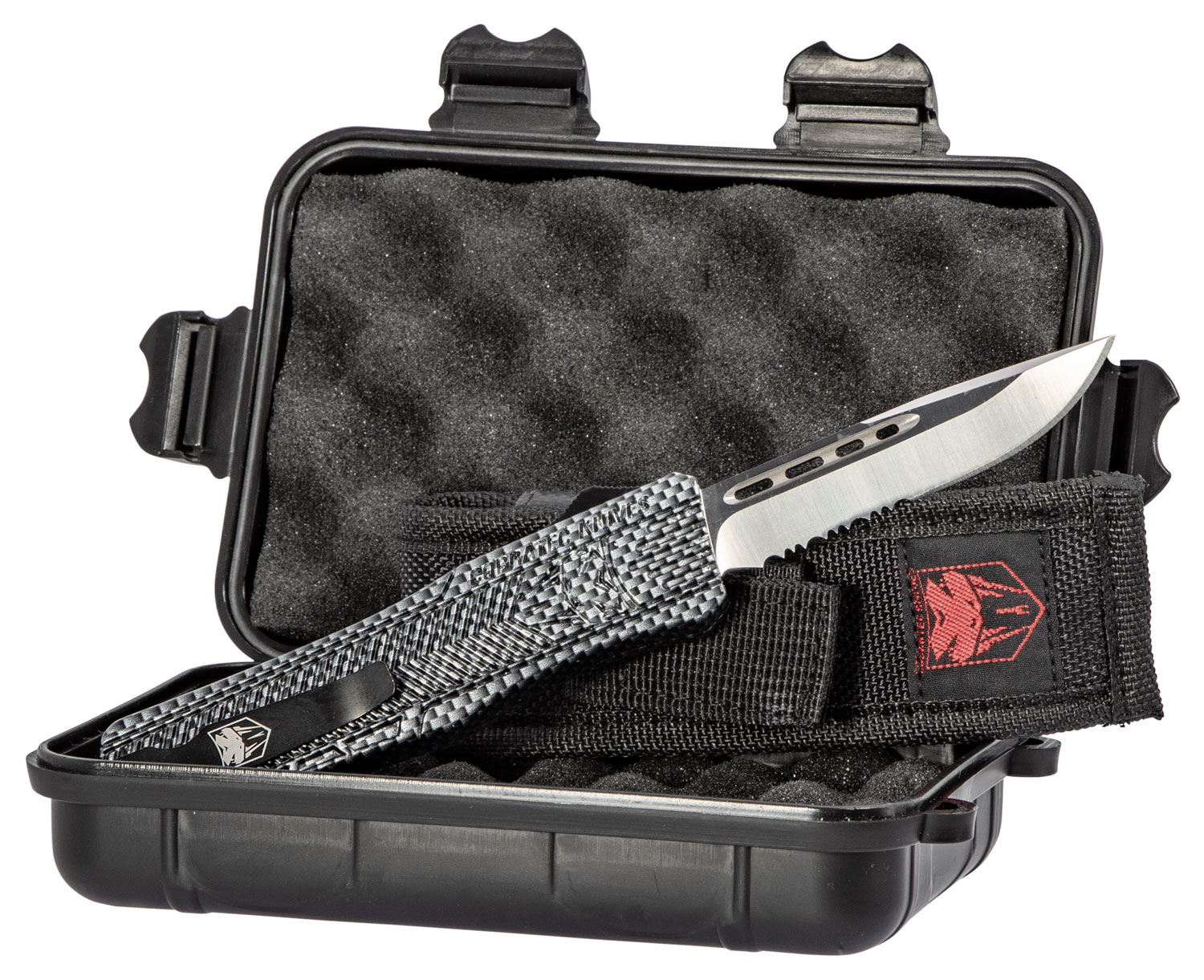 CobraTec Knives MSCFTK1MDS CTK-1 Medium 3″ OTF Drop Point Part Serrated D2 Steel Blade/ Carbon Fiber Aluminum Handle Features Glass Breaker Includes Pocket Clip