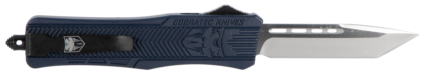 CobraTec Knives MNYCTK1MTNS CTK-1 Medium 3″ OTF Tanto Plain D2 Steel Blade/NYPD Blue Aluminum Handle Features Glass Breaker Includes Pocket Clip