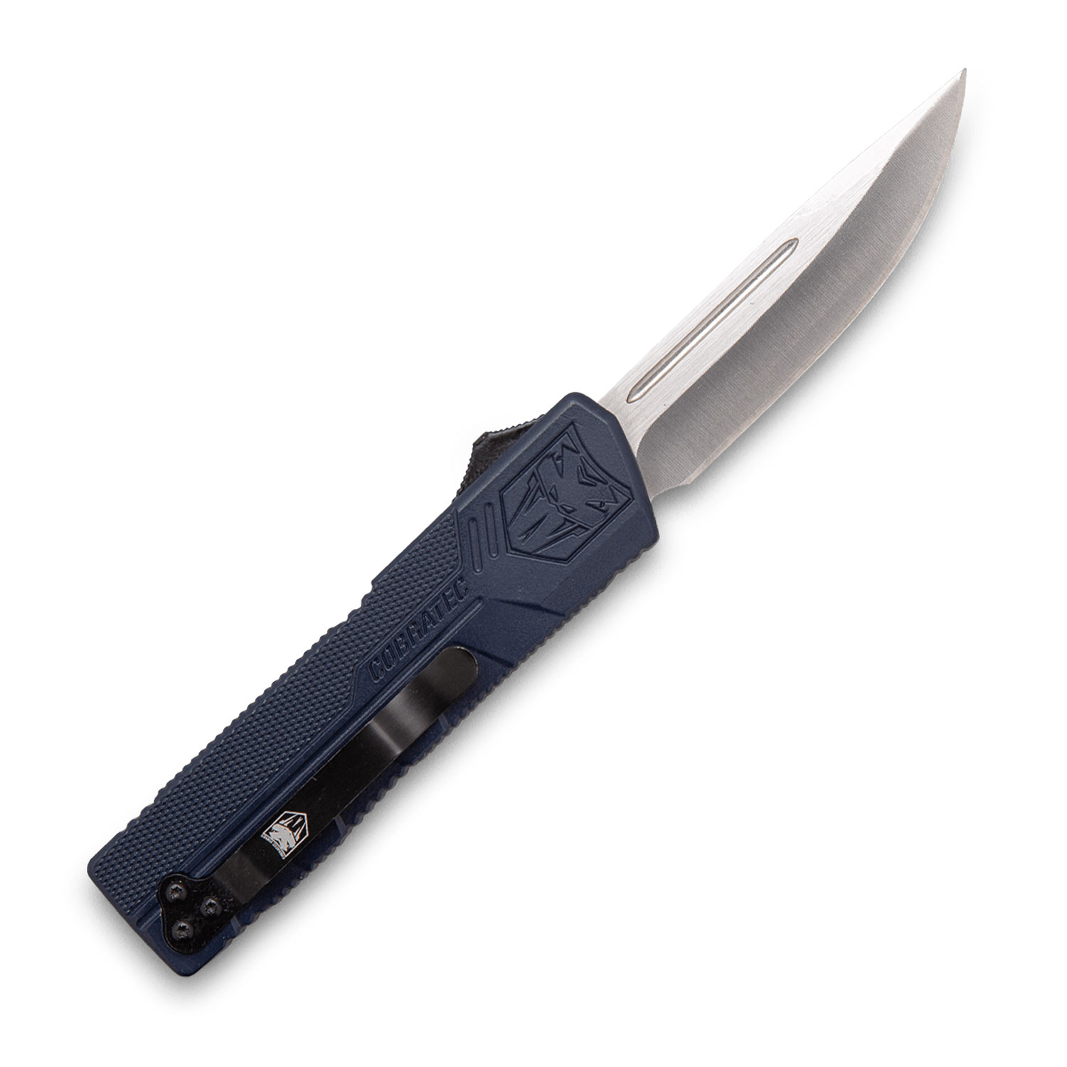 CobraTec Knives NYCTLWDNS Lightweight 3.25″ OTF Drop Point Plain D2 Steel Blade/NYPD Blue Aluminum Handle Includes Pocket Clip