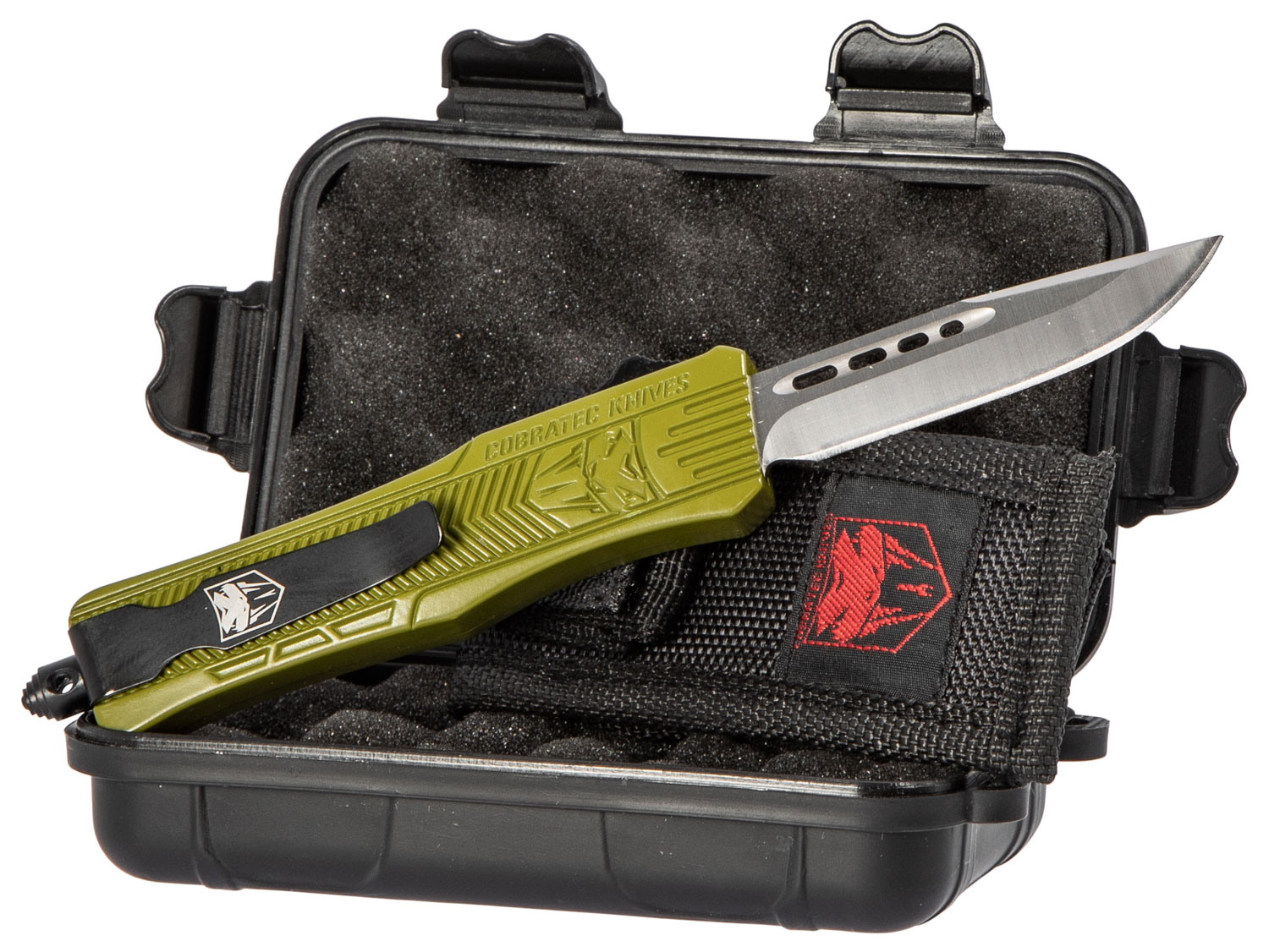 CobraTec Knives SODCTK1SDNS CTK-1 Small 2.75″ OTF Drop Point Plain D2 Steel Blade/OD Green Aluminum Handle Features Glass Breaker Includes Pocket Clip