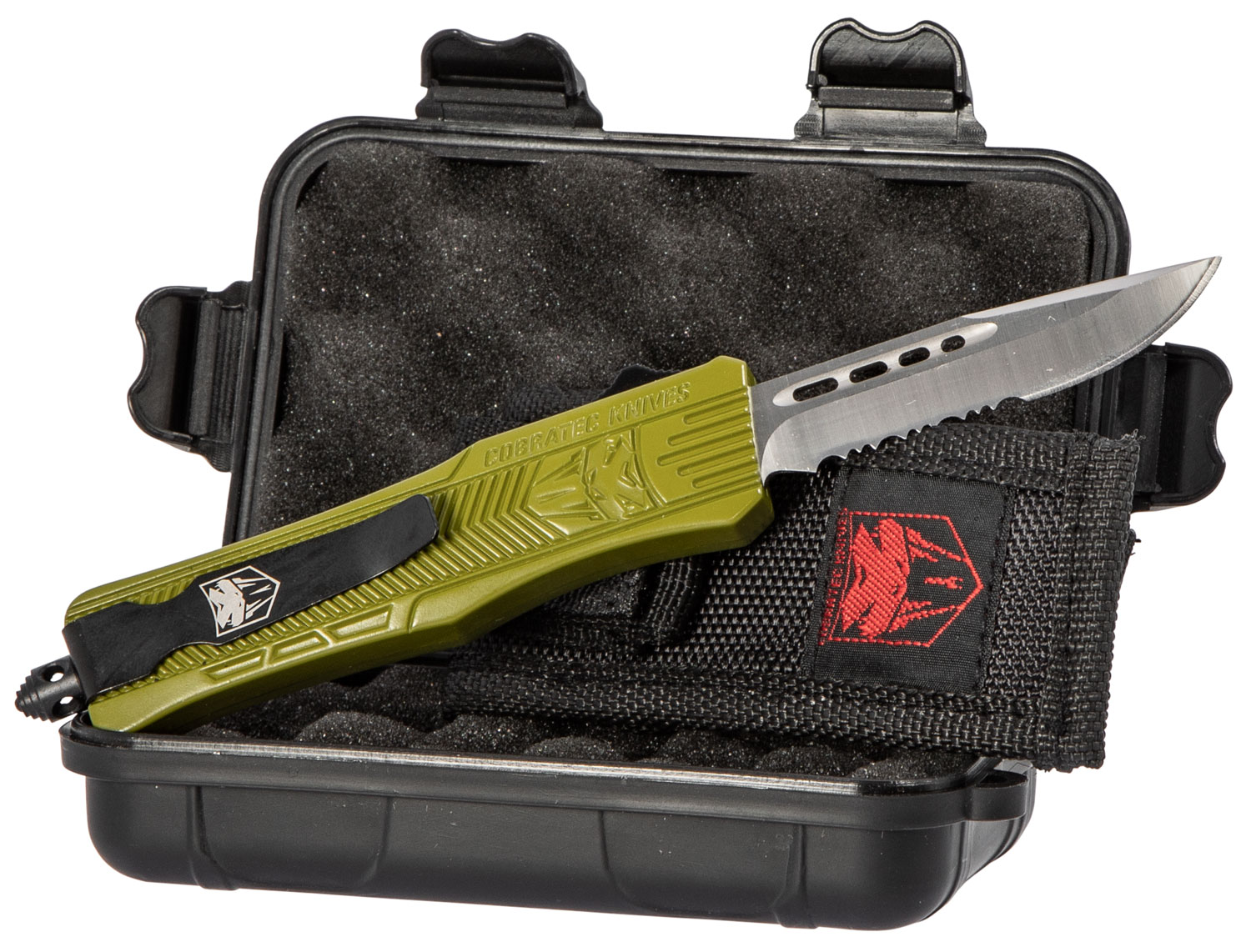 CobraTec Knives SODCTK1SDS CTK-1 Small 2.75″ OTF Drop Point Part Serrated D2 Steel Blade/OD Green Aluminum Handle Features Glass Breaker Includes Pocket Clip