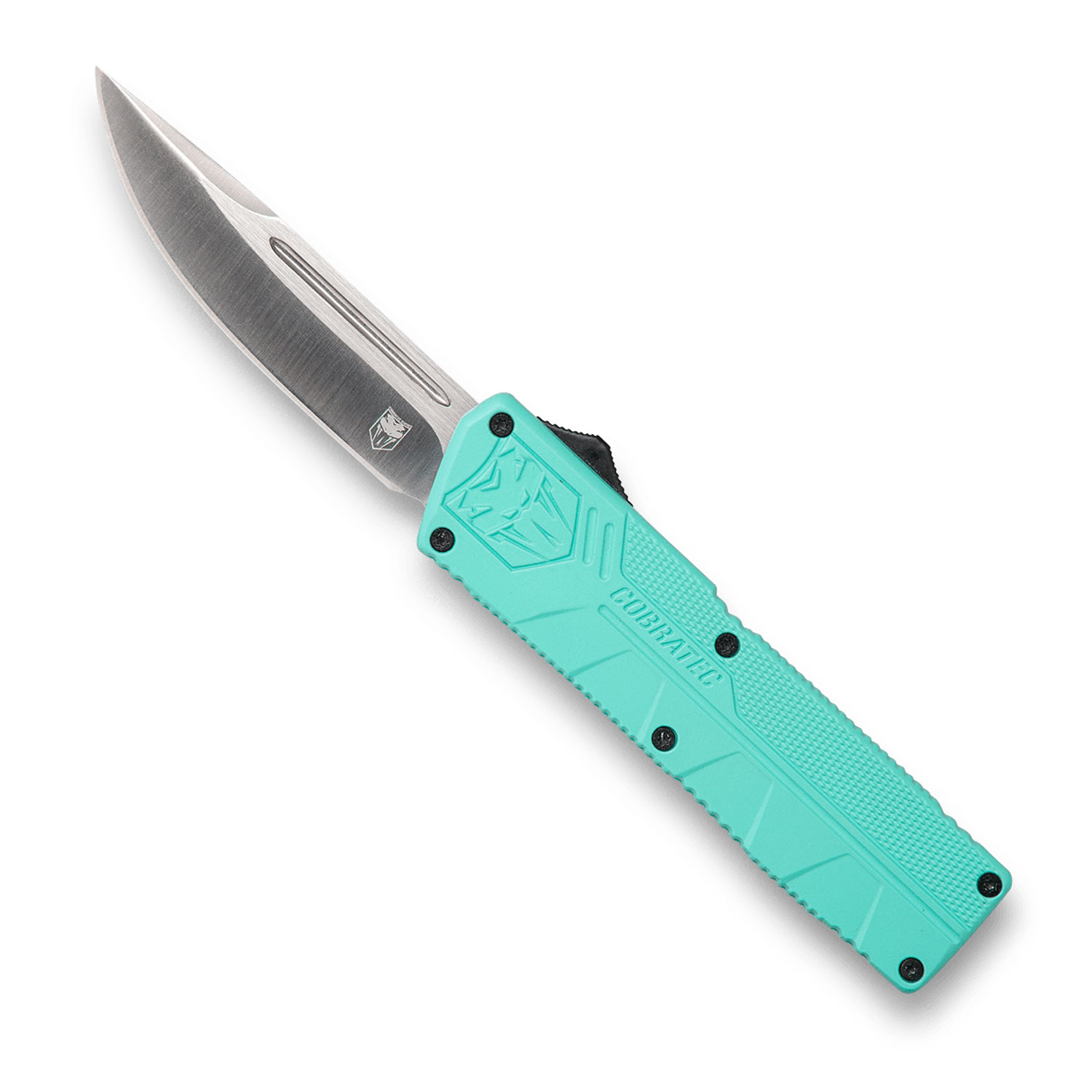 CobraTec Knives TFCTLWDNS Lightweight 3.25″ OTF Drop Point Plain D2 Steel Blade/Tiffany Blue Aluminum Handle Includes Pocket Clip