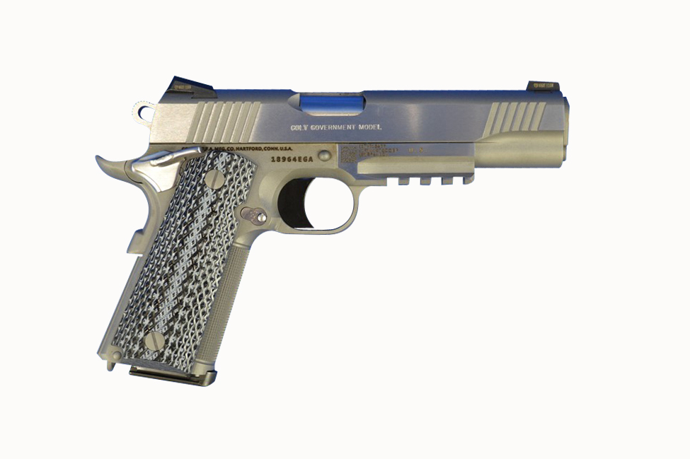 Colt Mfg O1070RGZ 1911 Government 45 ACP 7+1, 5″ Stainless National Match Barrel, Serrated Slide & Frame w/Picatinny Rail, Double Diamond Checkered Wood Grip