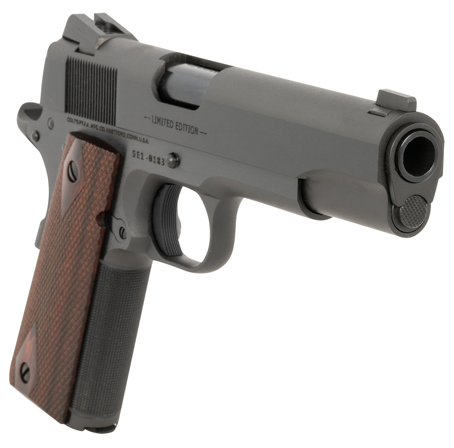 Colt Mfg O1911SE-A1 Government Limited Edition 45 ACP 7+1 5″ Blued National Match Barrel, Blued Serrated Steel Slide & Frame w/Beavertail, Double Diamond Checkered Rosewood Grip, Ambidextrous