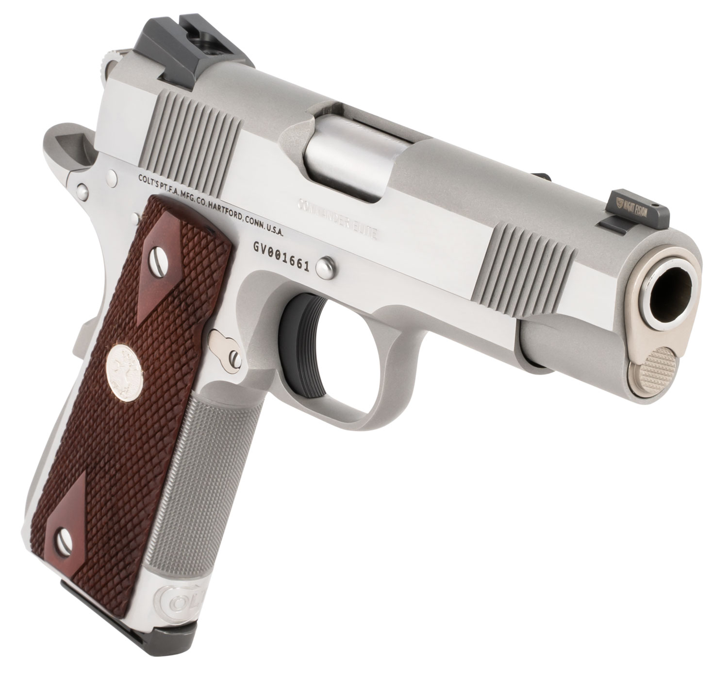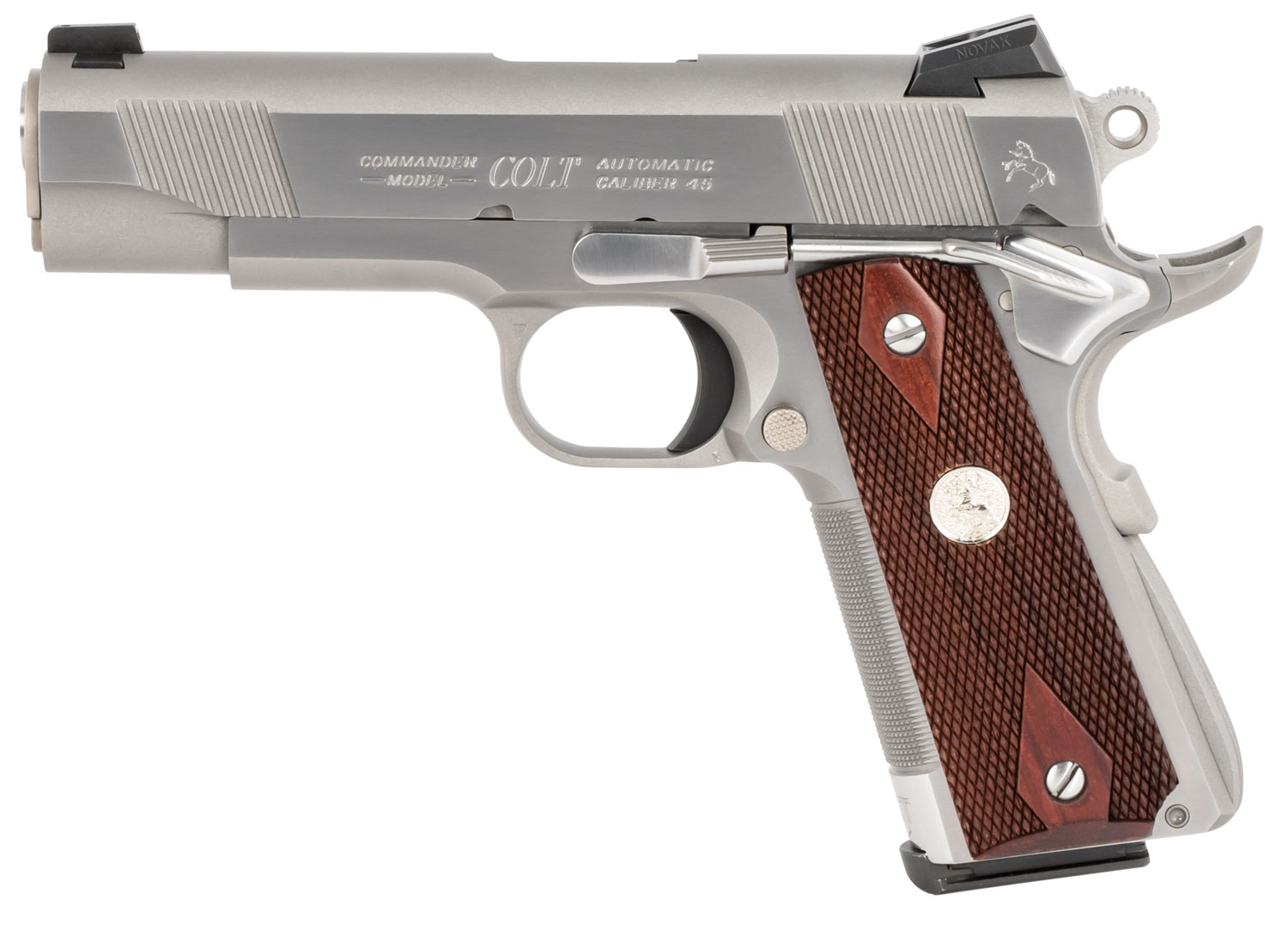 Colt Mfg O4012XSZ Combat Elite Commander 1911 45 ACP 8+1 4.25″ Stainless National Match Barrel, Brushed Stainless Serrated Slide & Frame w/Beavertail, Double Diamond Checkered Wood Grip, Ambidextrous