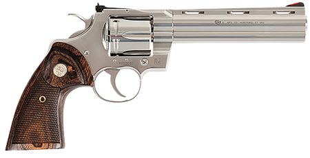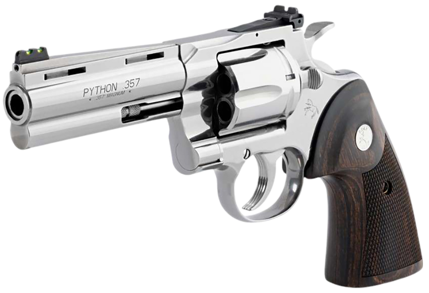 Colt Mfg PYTHONSP4WFT Python Target 357 Mag 6rd 4.25″ Semi-Bright Stainless Vent Rib Barrel, Cylinder & Frame, Walnut Target Grip