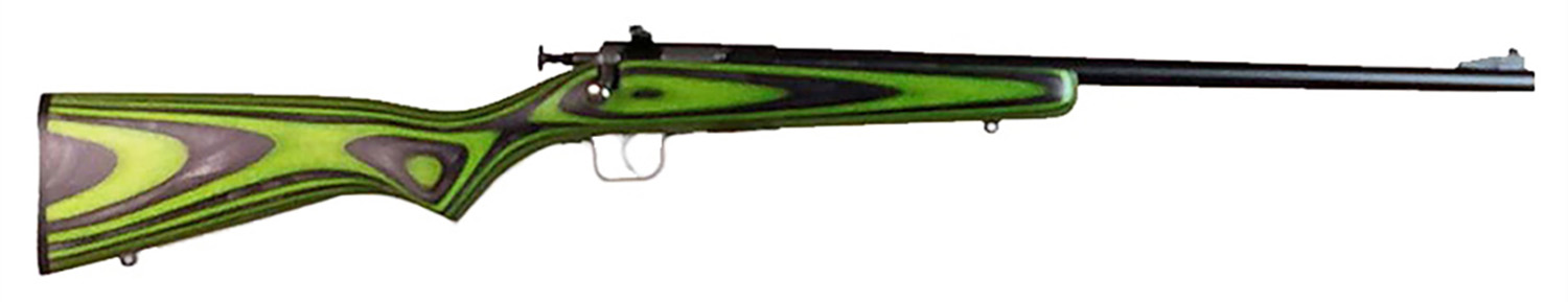 Crickett KSA2231 Youth 22 LR 1rd 16.12″ Blued Barrel & Receiver, Fixed Front/Adjustable Rear Peep Sights, Green/Black Laminate Stock w/11.5″ LOP, Rebounding Firing Pin Safety