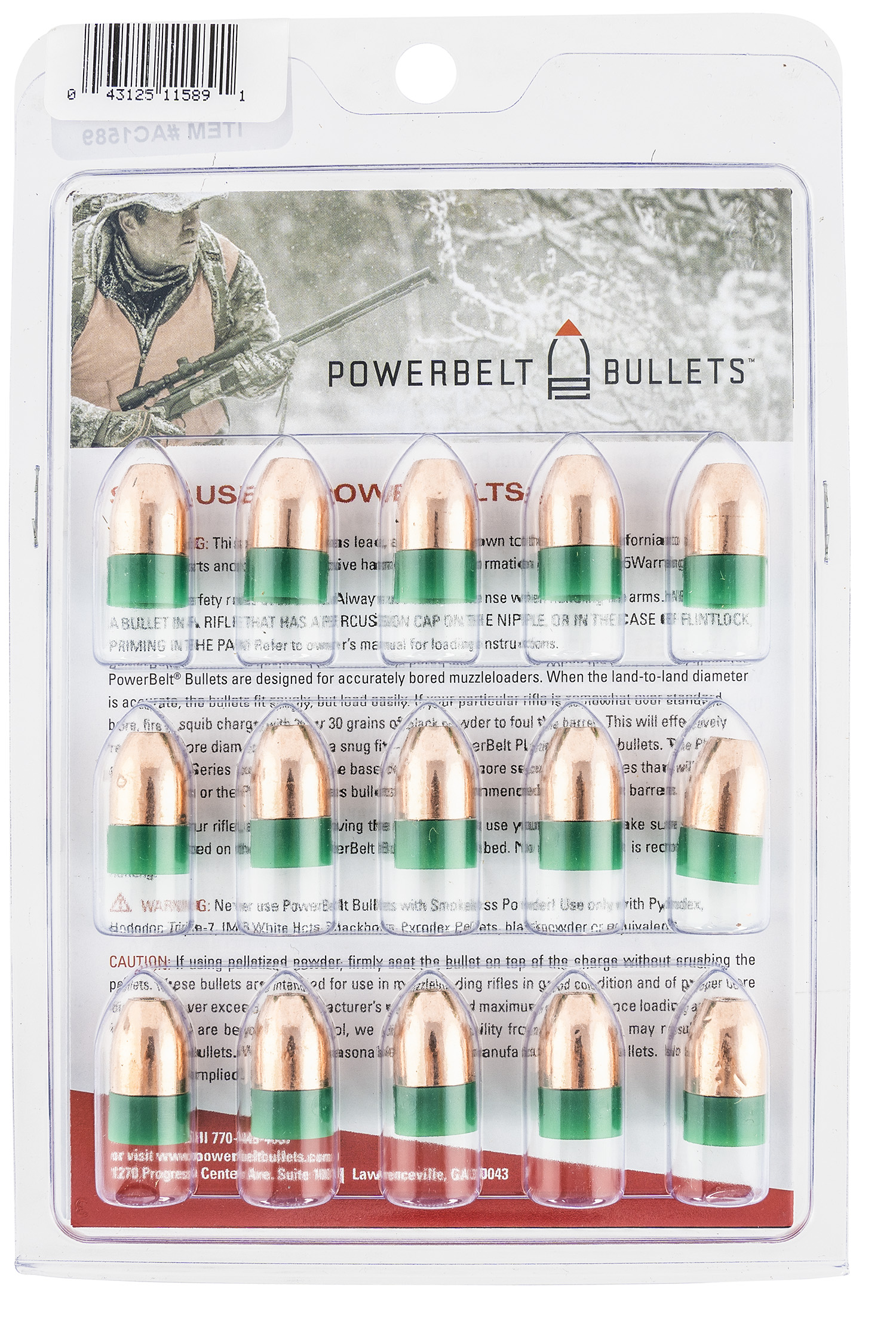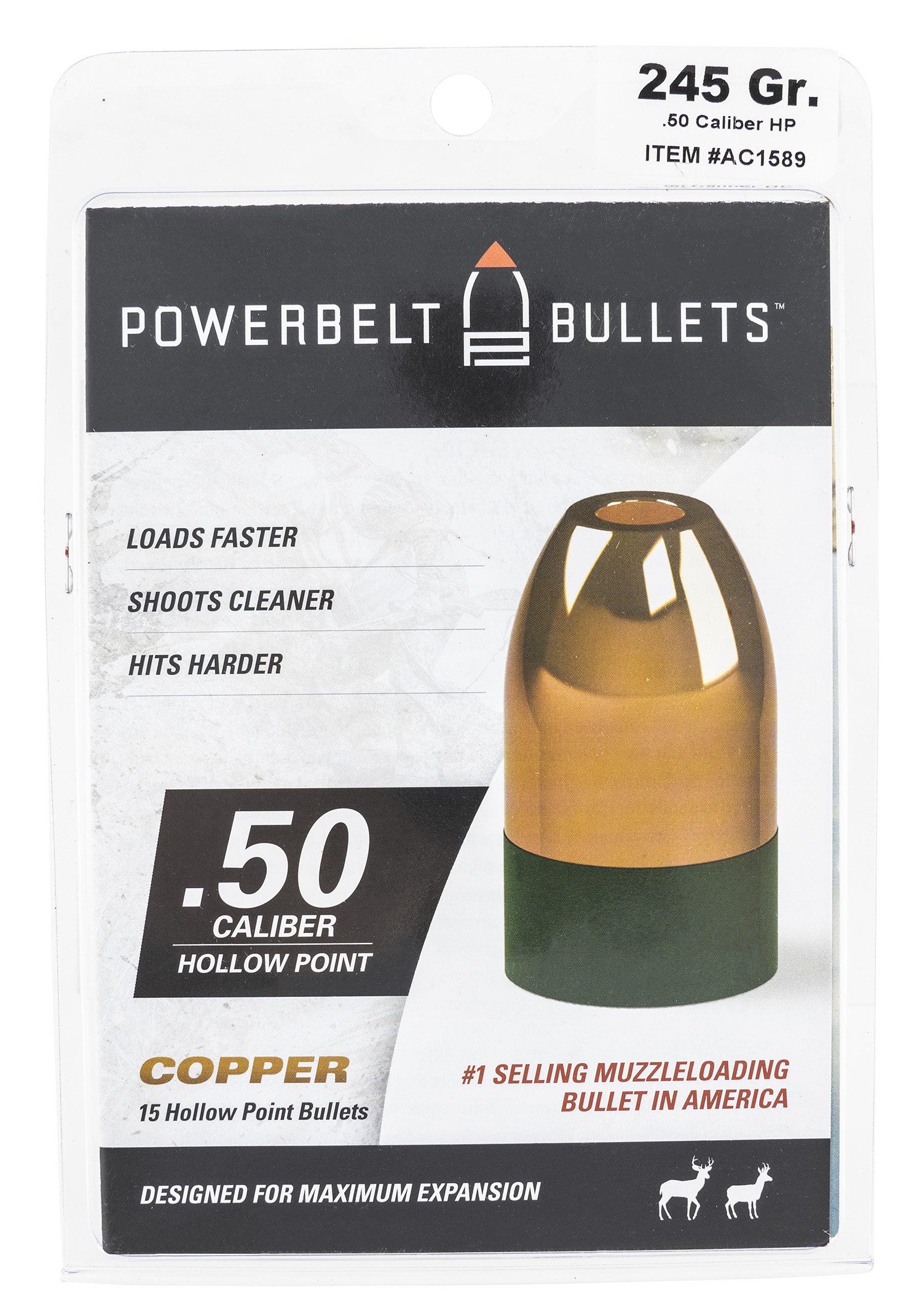 PowerBelt Bullets AC1589 Copper Muzzleloader 50Cal Hollow Point 245gr 15rd/Box