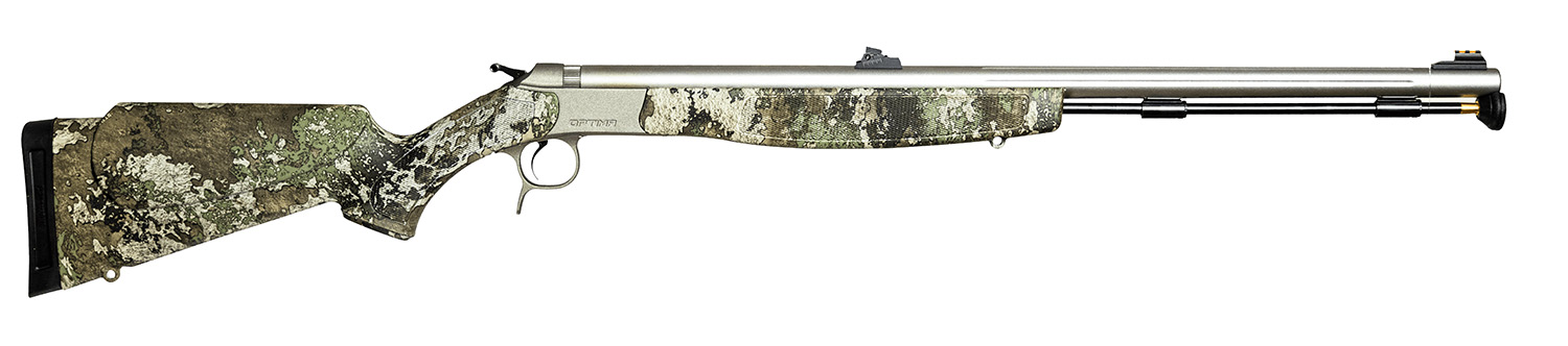CVA PR6022SM Optima V2 50 Cal 209 Primer 26″ Fluted/Threaded, Matte Stainless Barrel/Rec, TrueTimber Strata Furniture, Quick-Release Breech Plug, DuraSight Scope Mount